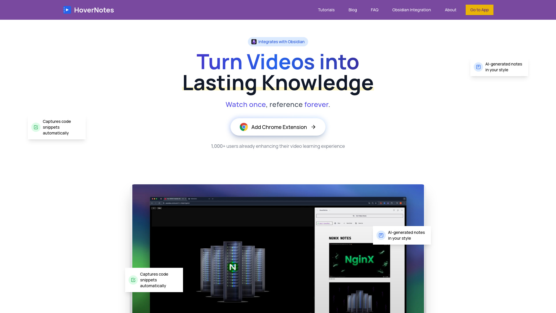 AI-powered tool to transform video tutorials into Obsidian notes.