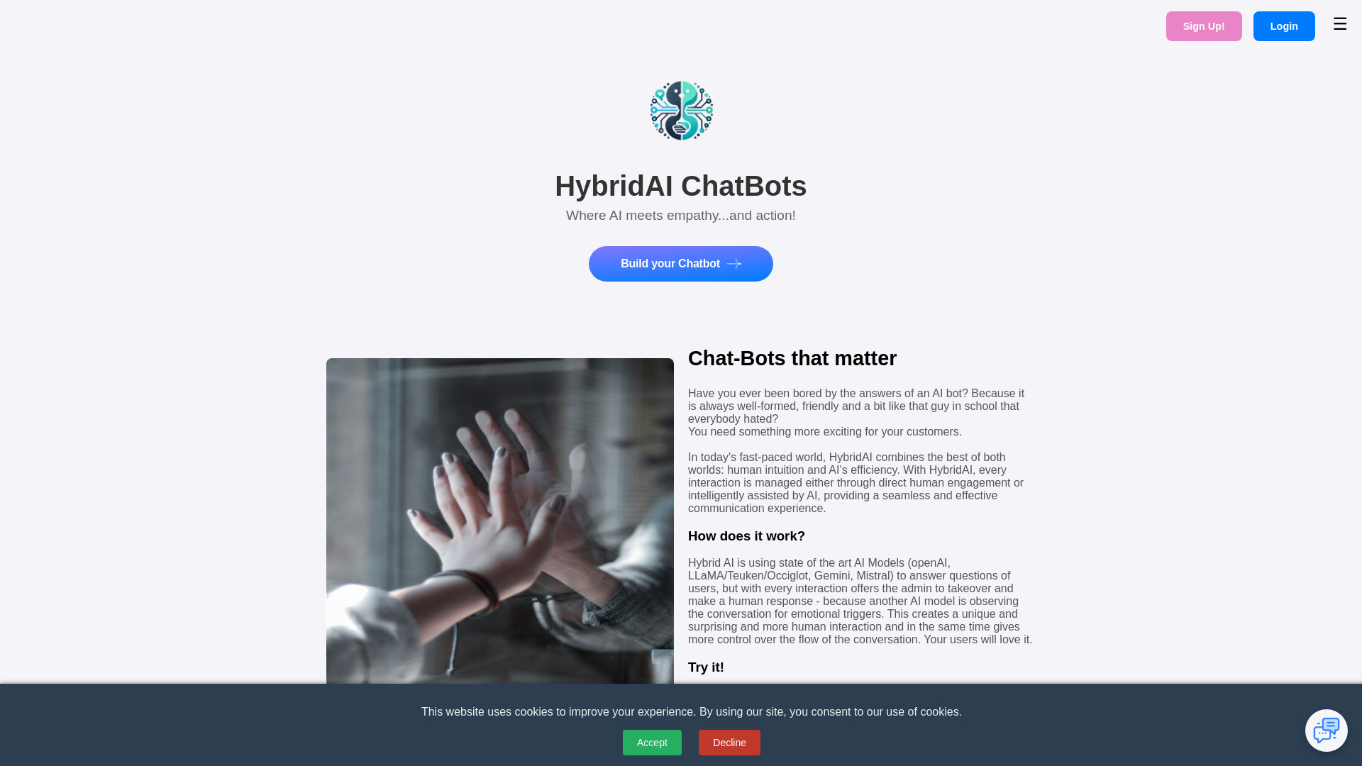 HybridAI: AI chatbot with emotional awareness, function calls, and human takeover.