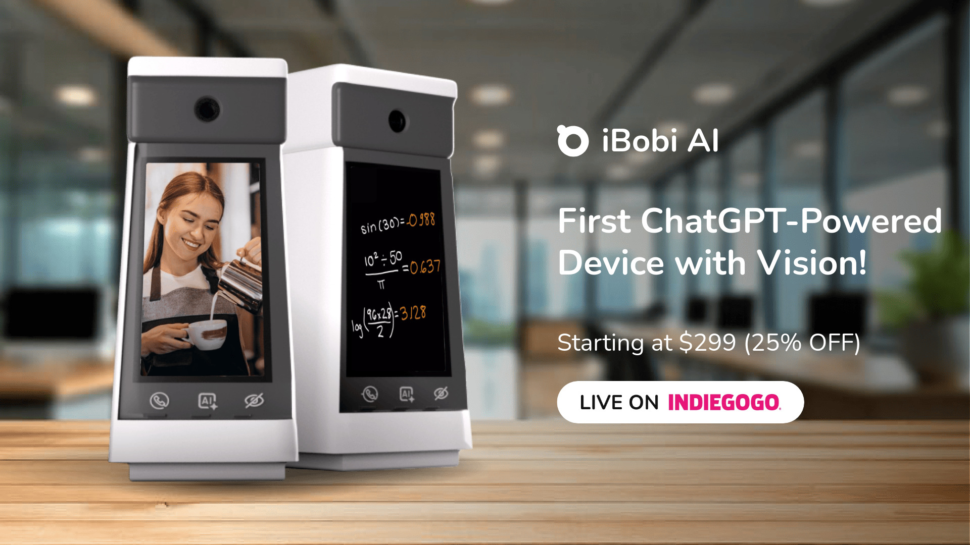 World's first video chatbot device with ChatGPT integration for assistance and security.