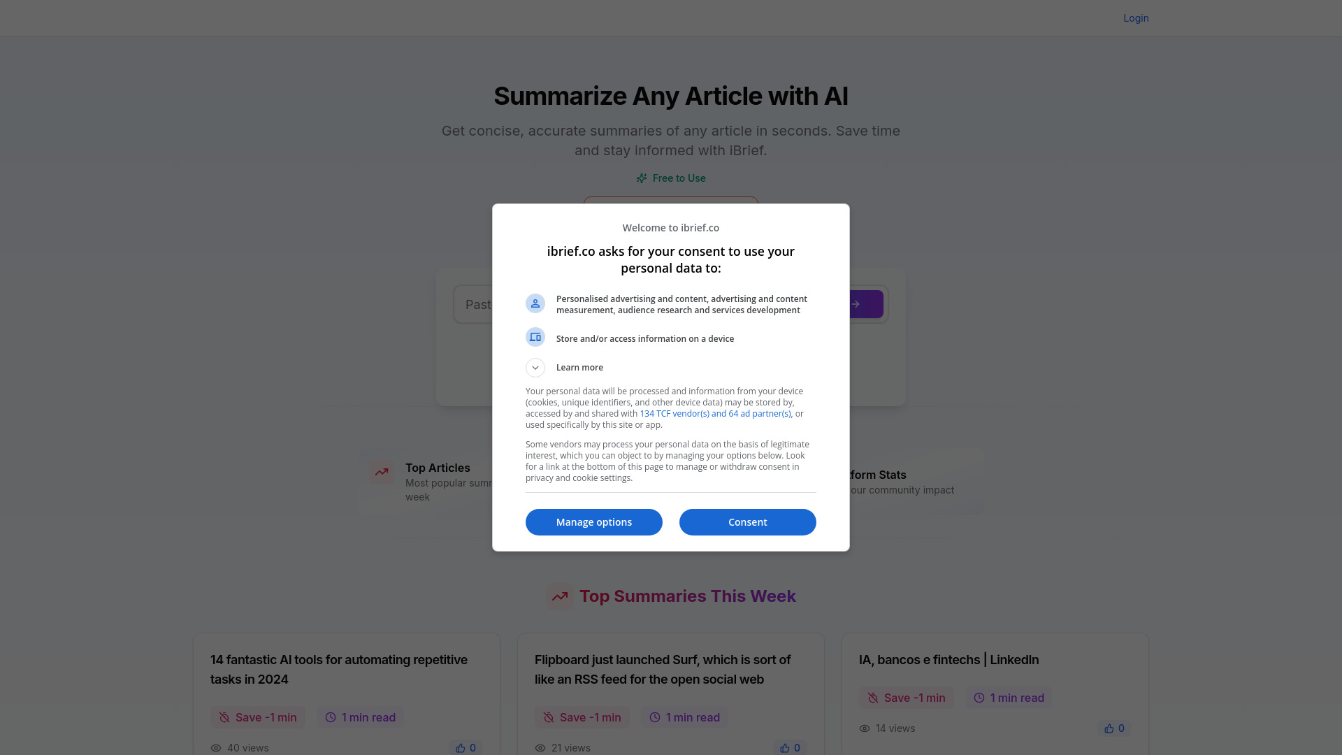 iBrief is an AI-powered tool for concise article summaries and easy sharing.
