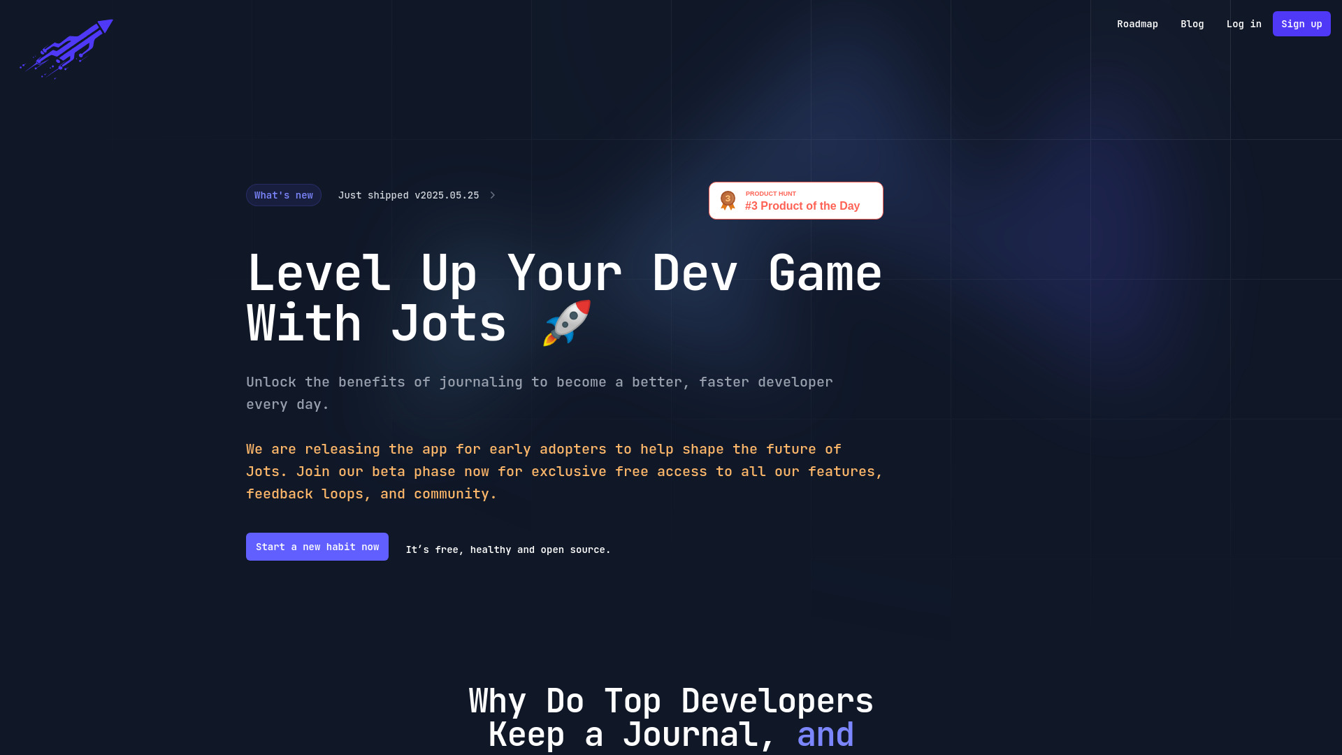 Developer-focused journaling app to accelerate goals and improve skills.