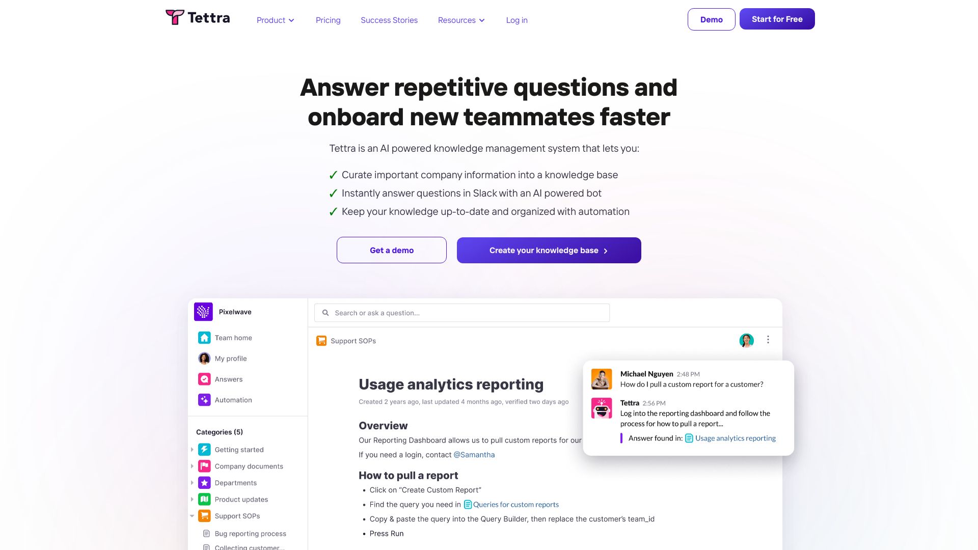 AI-powered knowledge management system for teams to organize and share information.