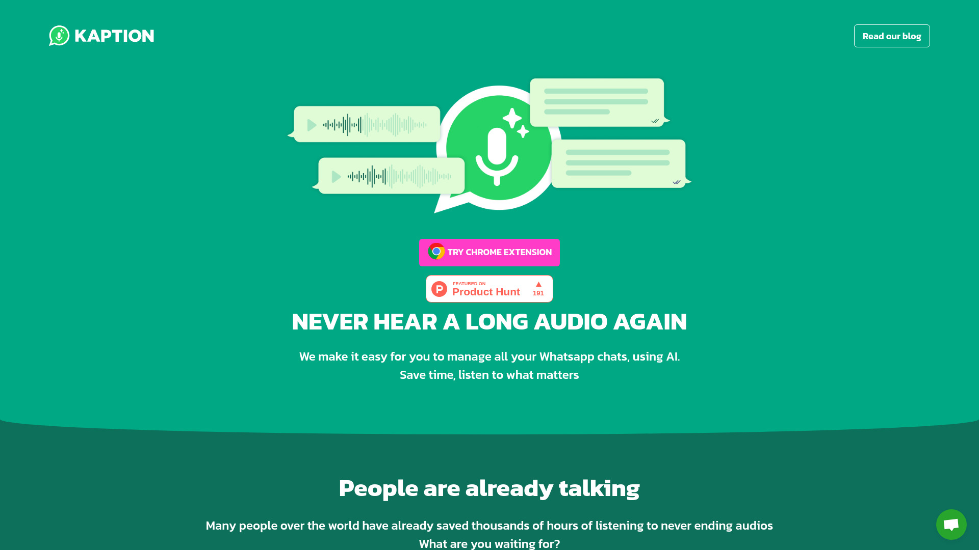 Transcribes WhatsApp audio to text, provides AI summaries, and enhances privacy on WhatsApp Web.