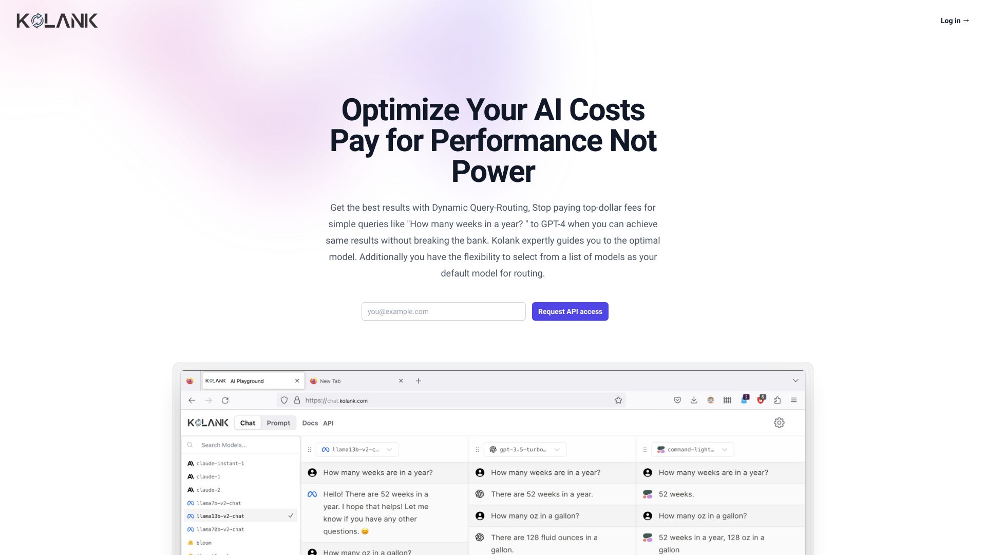 Kolank optimizes AI costs with dynamic query routing and a unified API for various AI models.