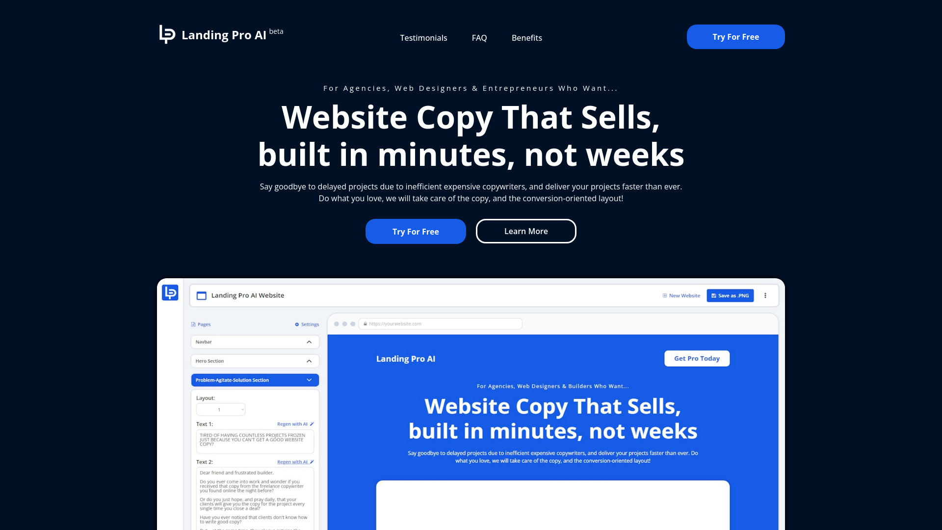 Landing Pro AI generates website copy and wireframes quickly to speed up project launches.