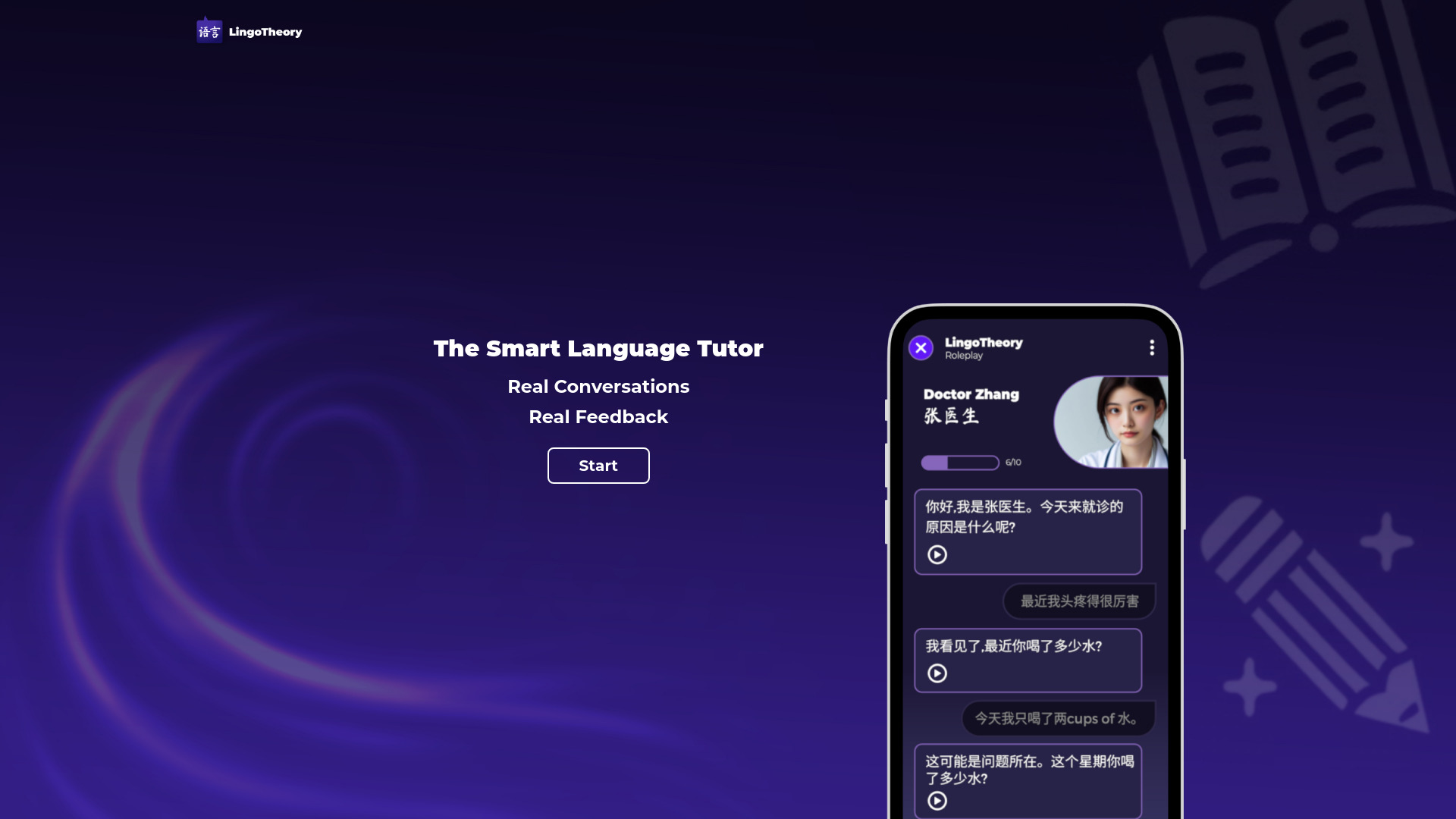 AI language learning platform for practicing Mandarin Chinese through conversations.