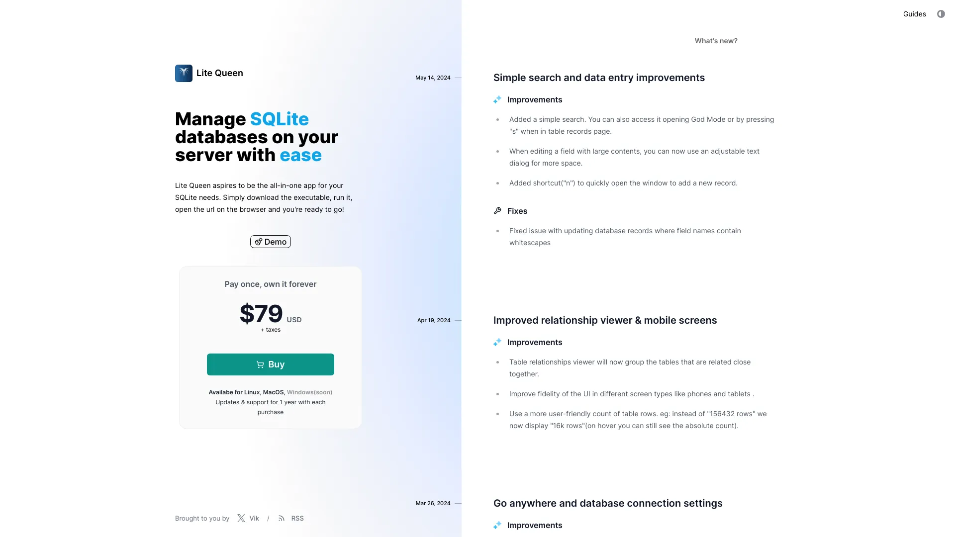 Open-source SQLite database management software for your server.
