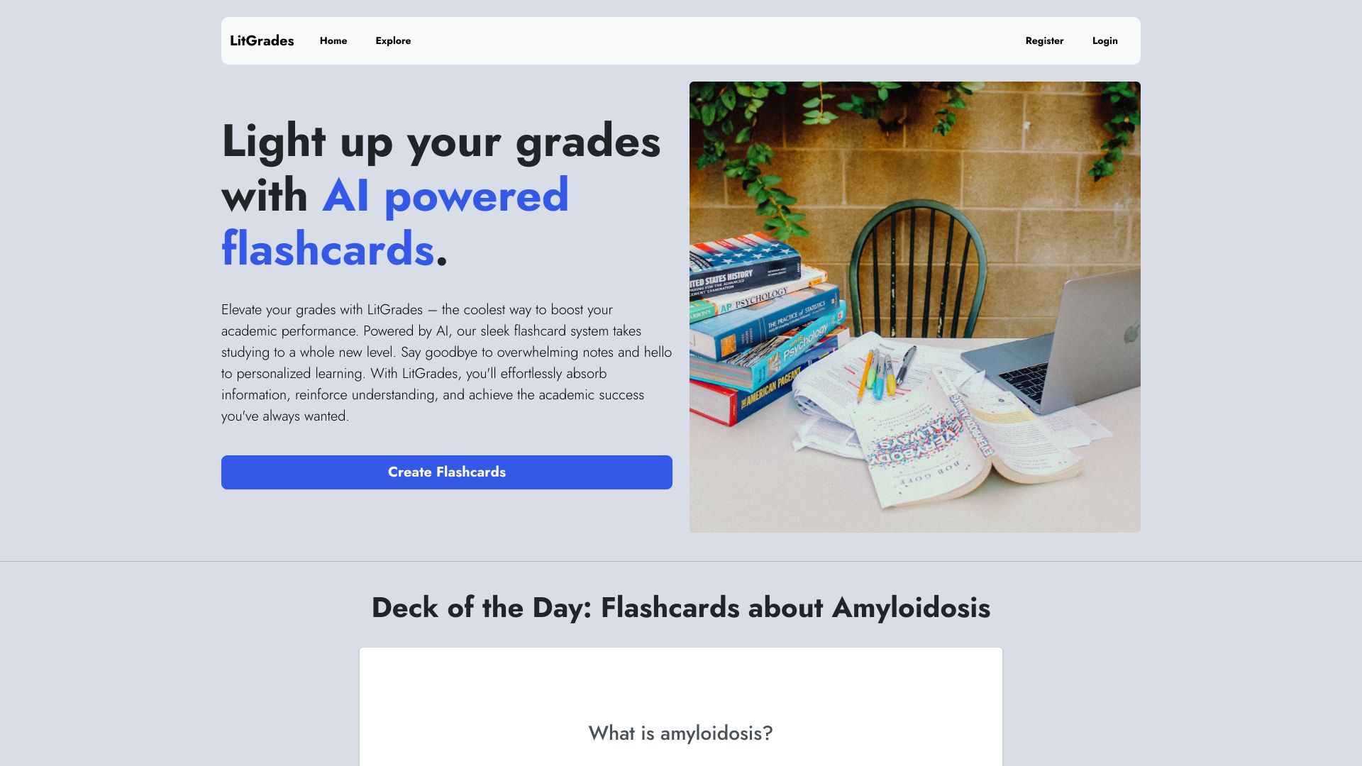 AI-powered platform for generating flashcards, notes, worksheets, and quizzes for students.