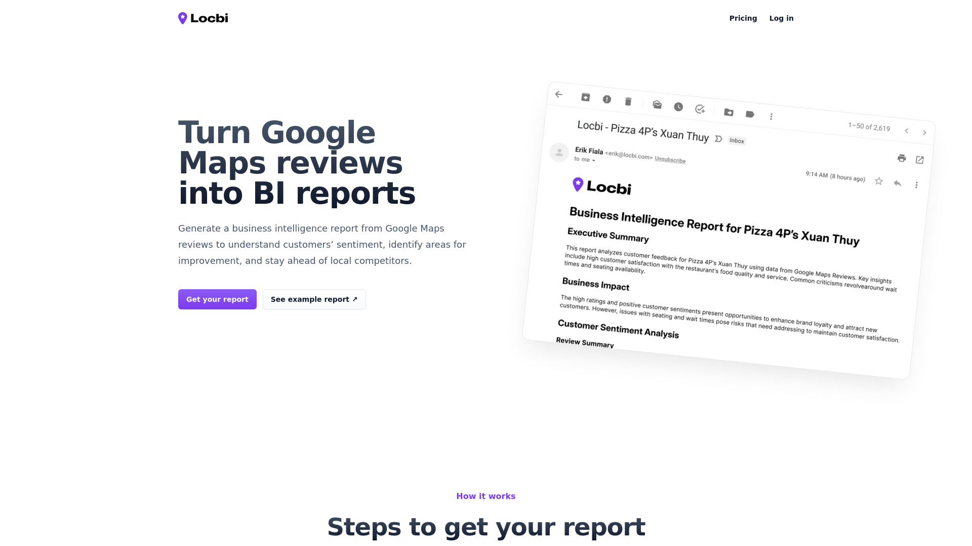 Locbi: BI reports from Google Maps reviews for competitive insights.