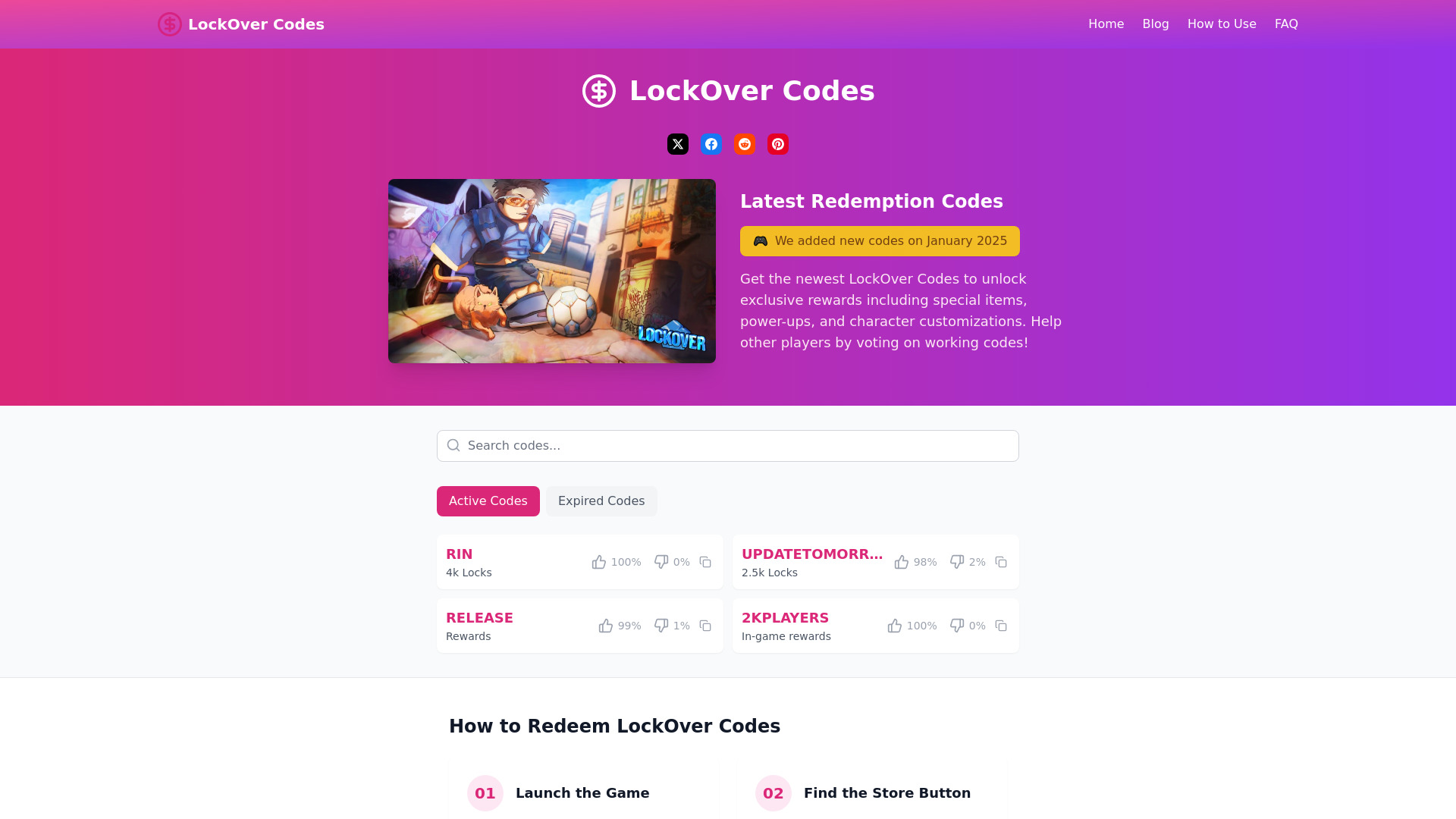 A website providing the latest LockOver redeem codes for in-game rewards.