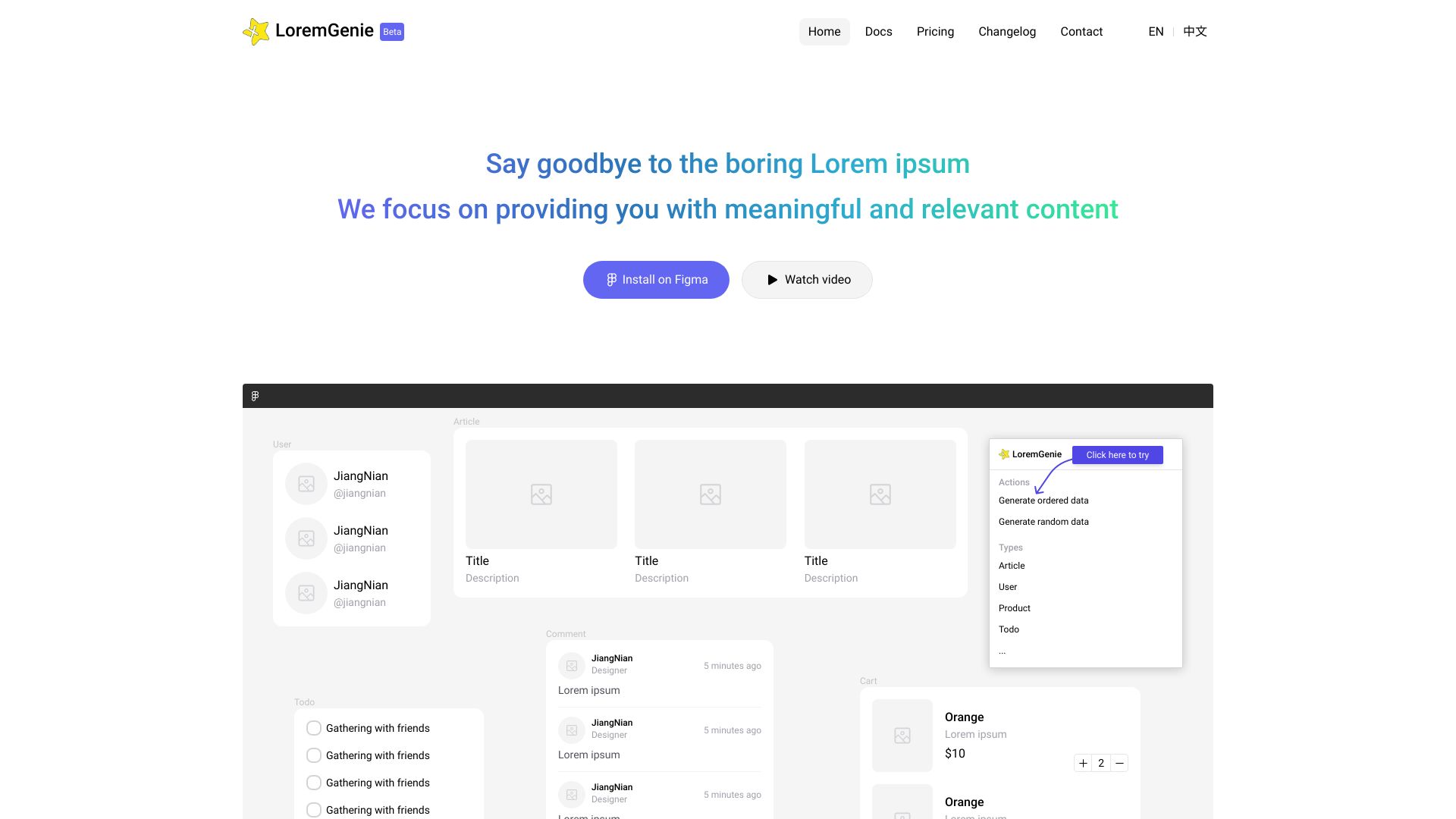 Figma plugin for generating meaningful content instead of Lorem Ipsum.