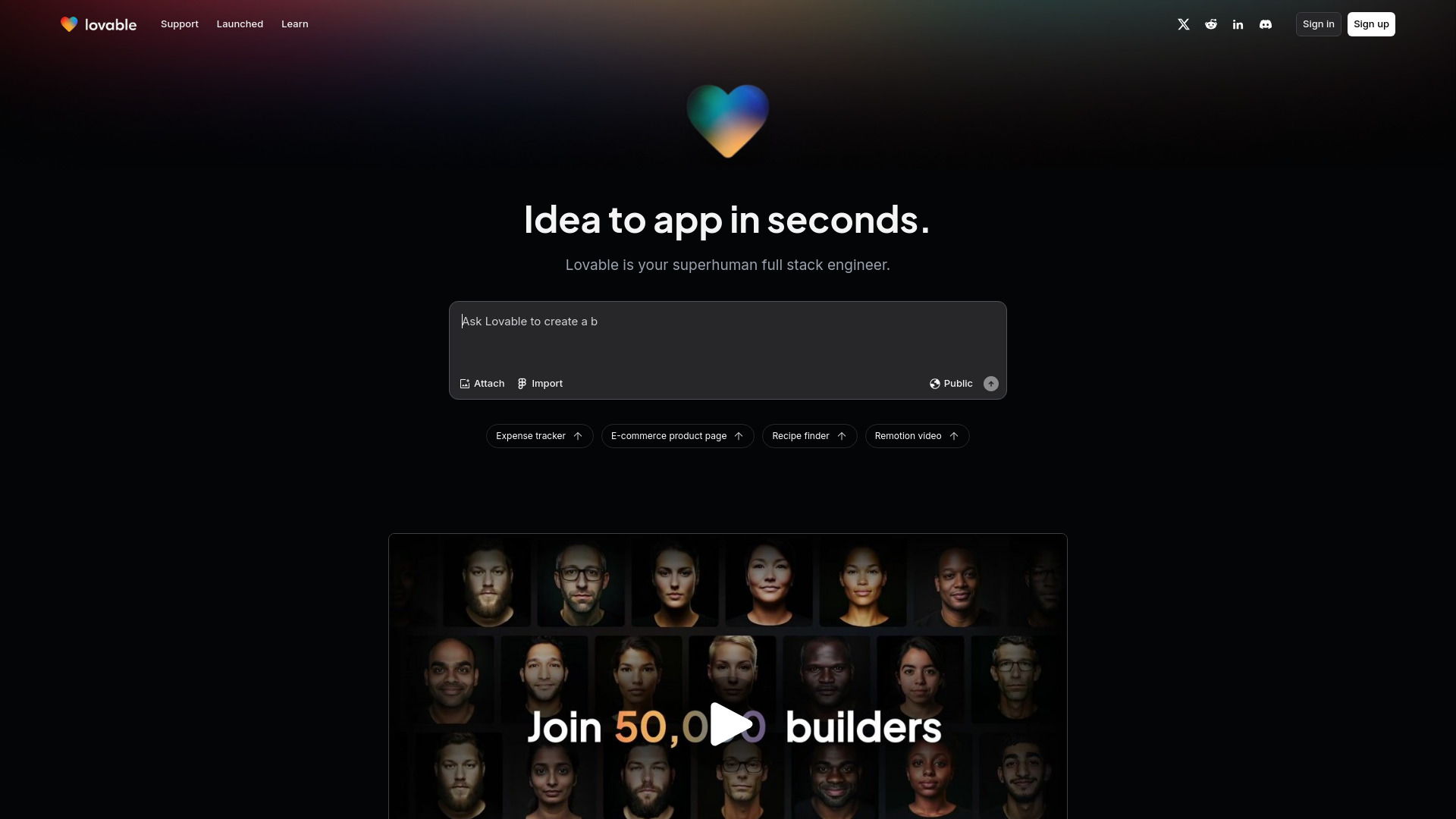 Lovable: Build software products from idea to app using a chat interface.