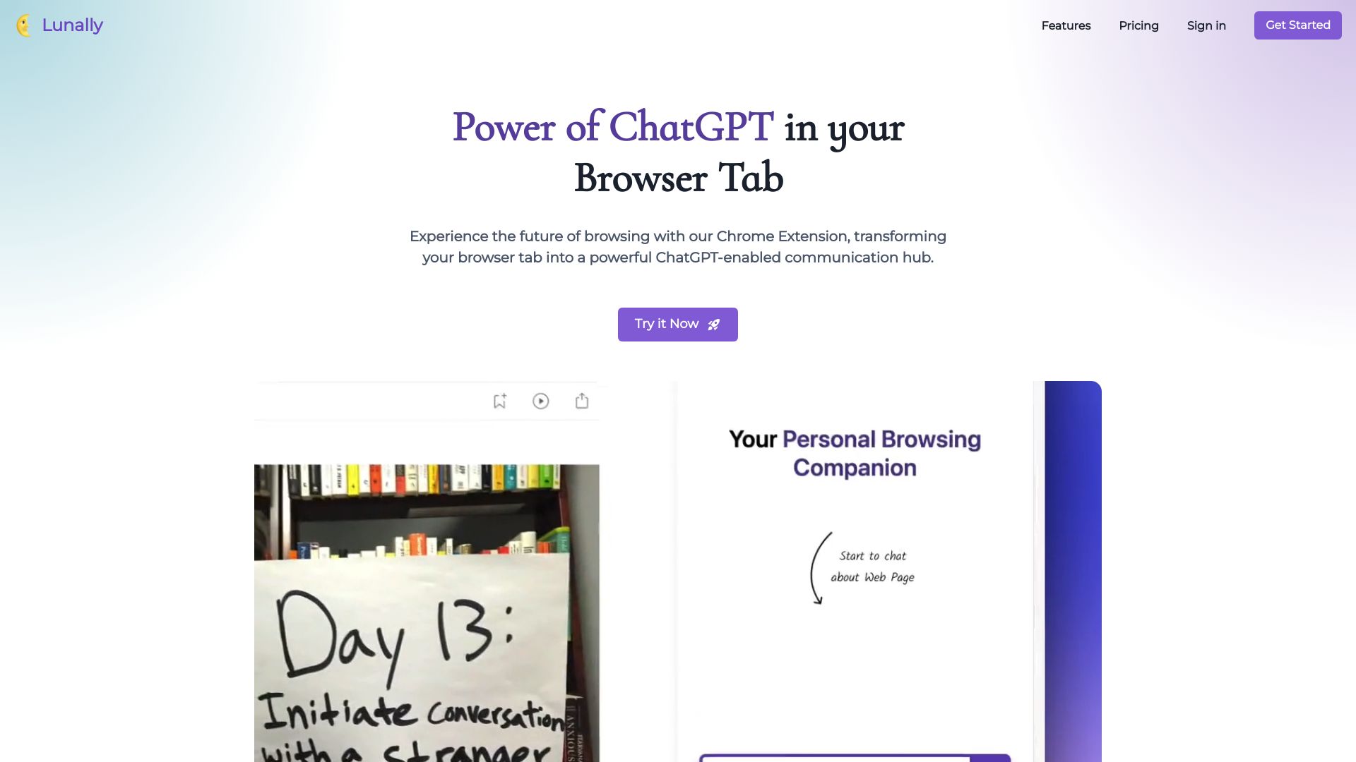 Lunally is a Chrome extension that uses ChatGPT to enhance browsing.
