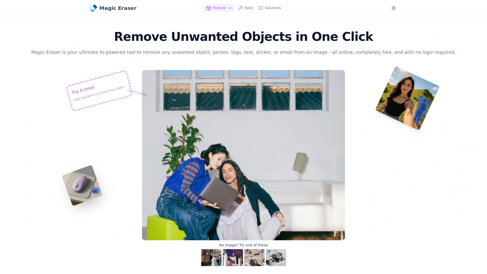 AI-powered tool to remove unwanted objects from photos, free and no login.