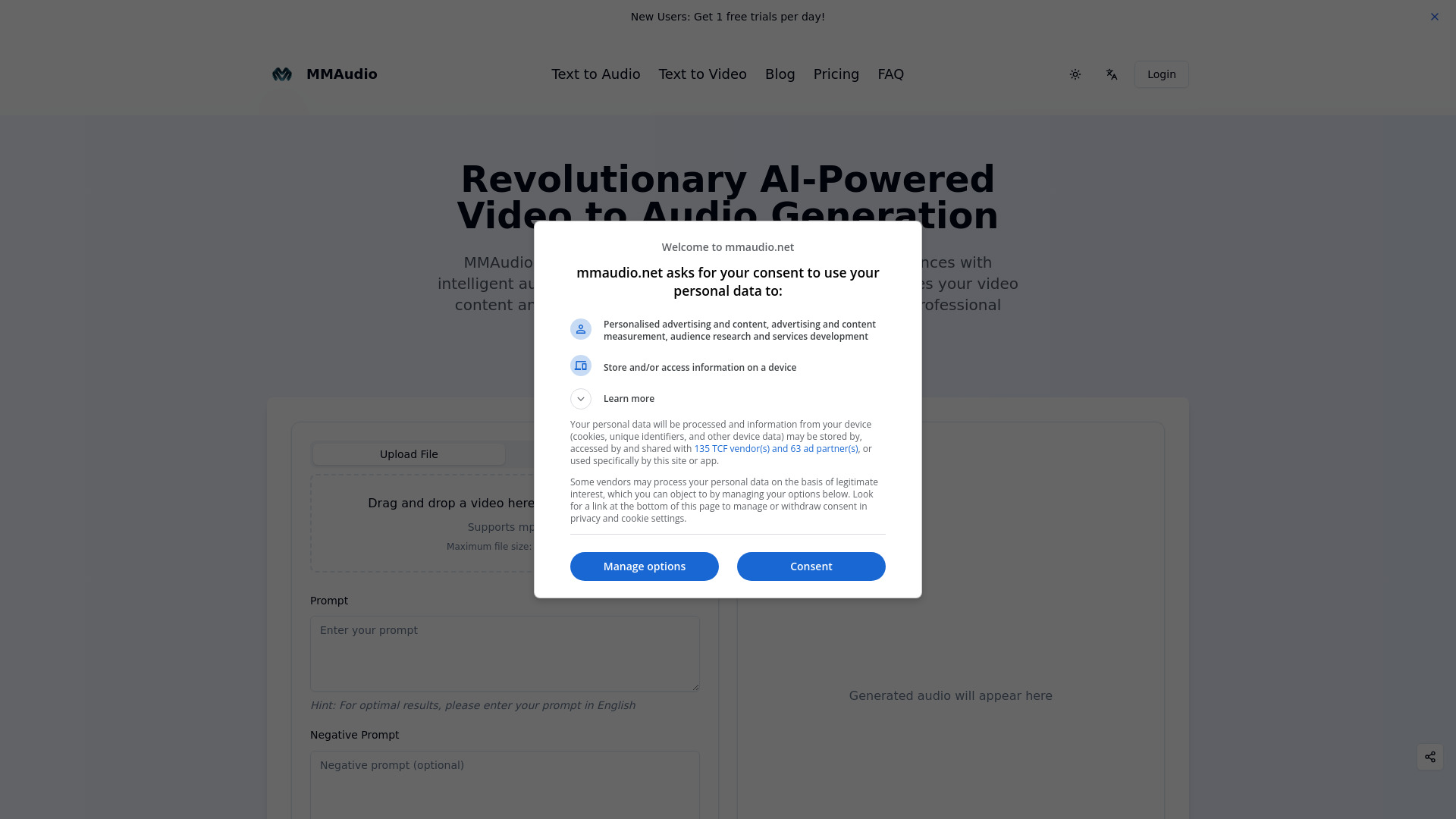 AI tool for generating high-quality audio for videos.