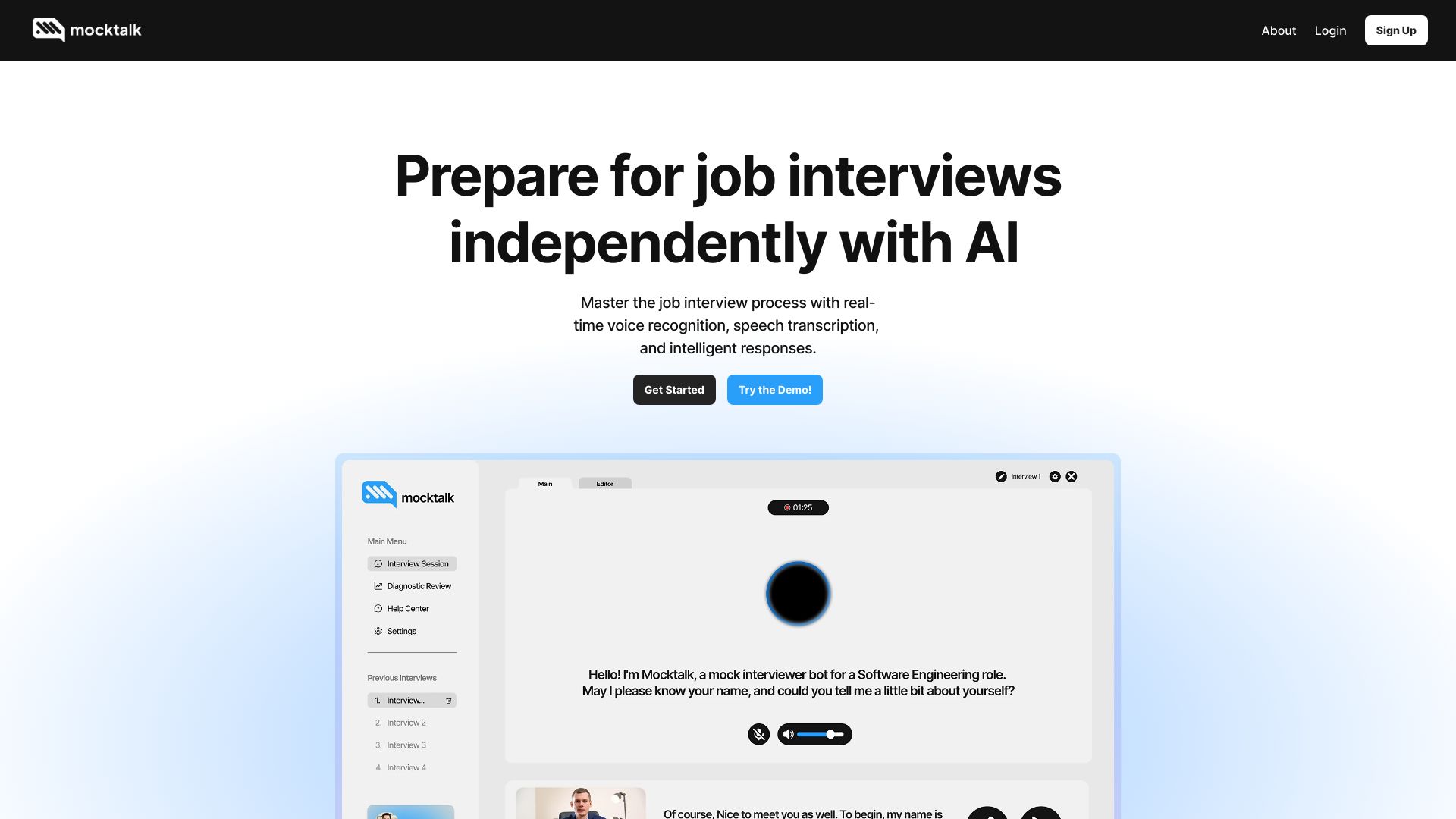 AI mock interview platform for job seekers with practice interviews and feedback.