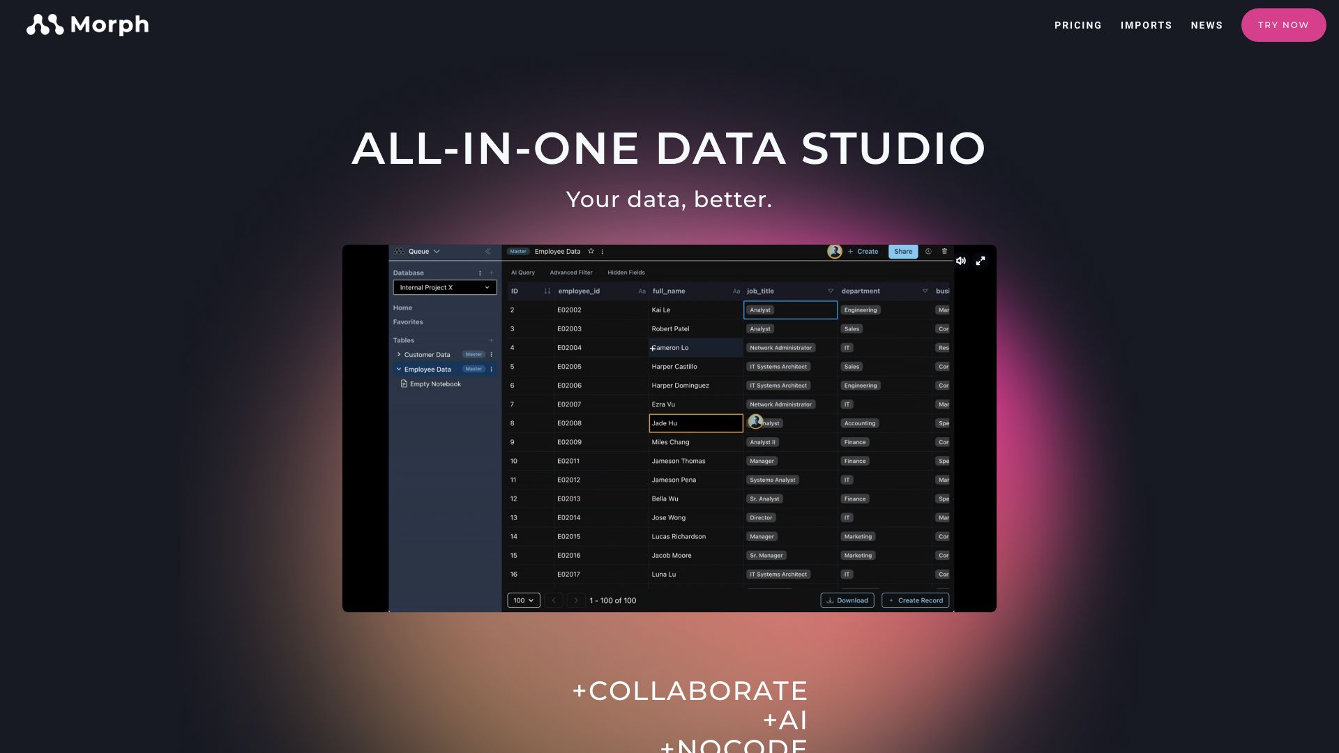 No-code data management tool for building AI-powered data apps.