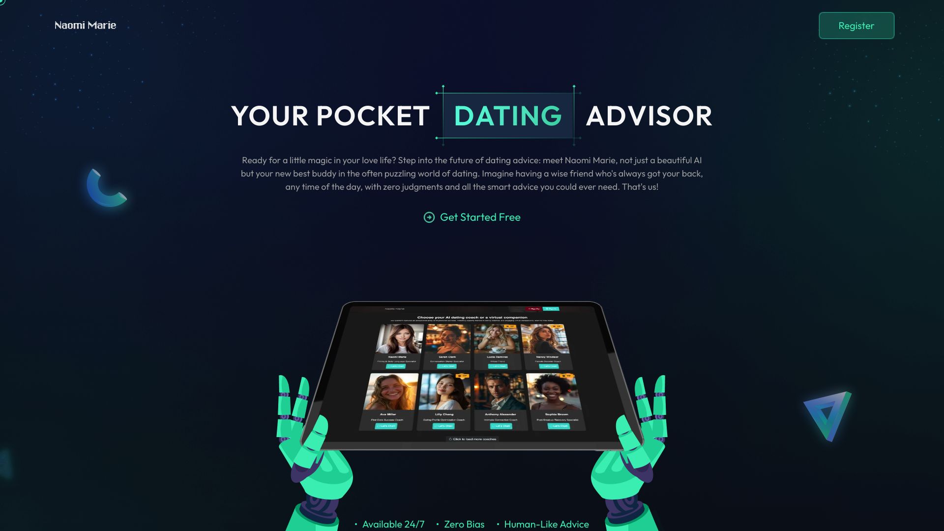 24/7 AI Dating Coach & Virtual Companion with personalized dating advice and multilingual support.
