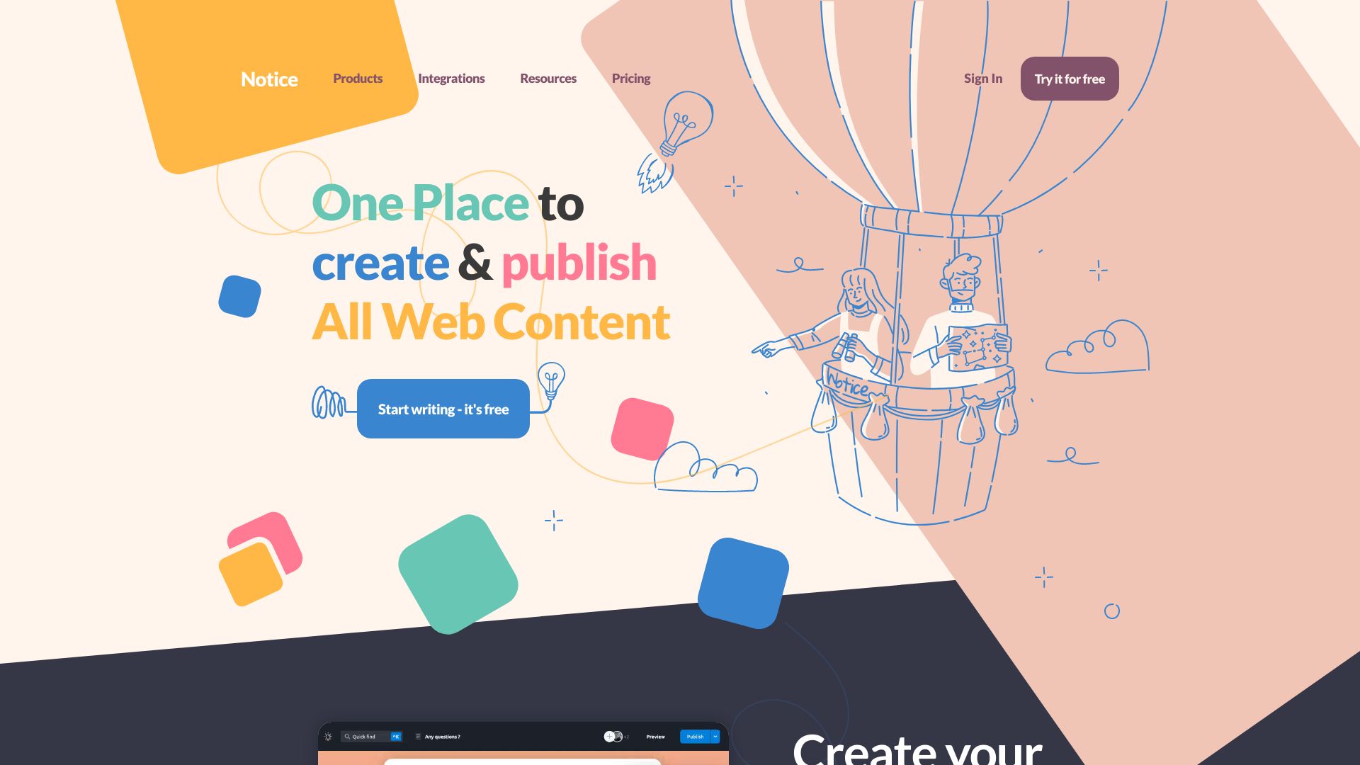 No-code editor for creating blogs, docs, portfolios with AI and collaboration features.