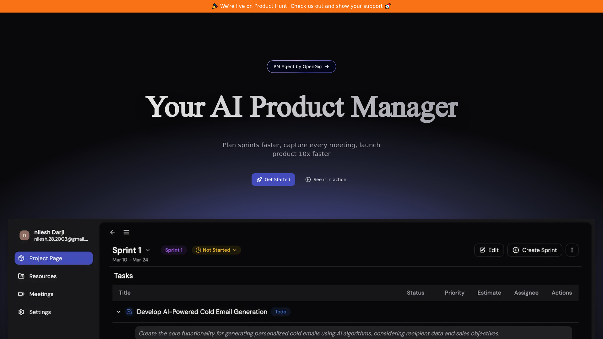 OpenGig offers AI-powered product management (PM Agent) and MVP building (Heizen) services.