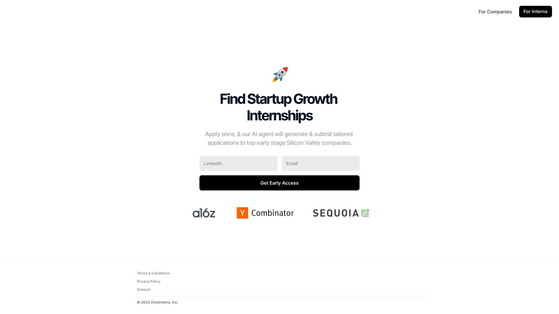 Connects interns with Silicon Valley startups using AI-powered job applications and candidate ranking.
