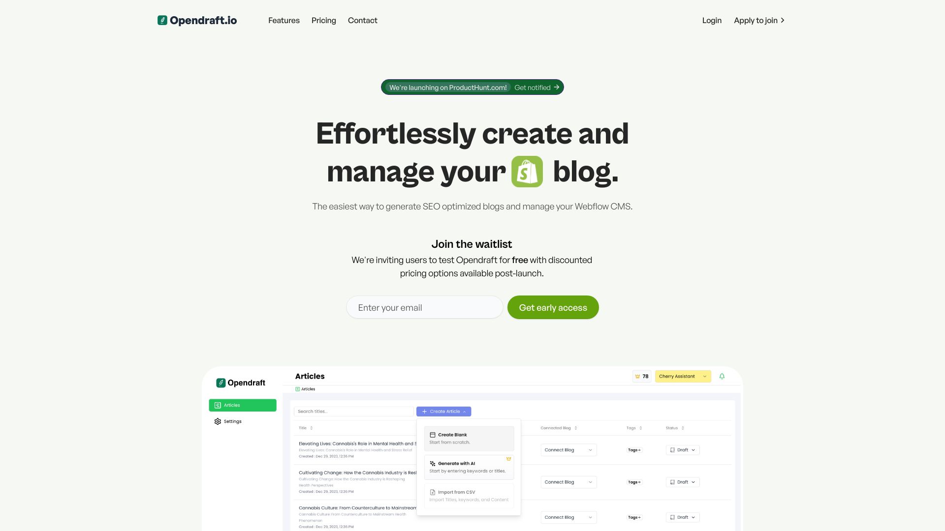 AI-powered blog editor for SEO-optimized content on Webflow and Shopify.