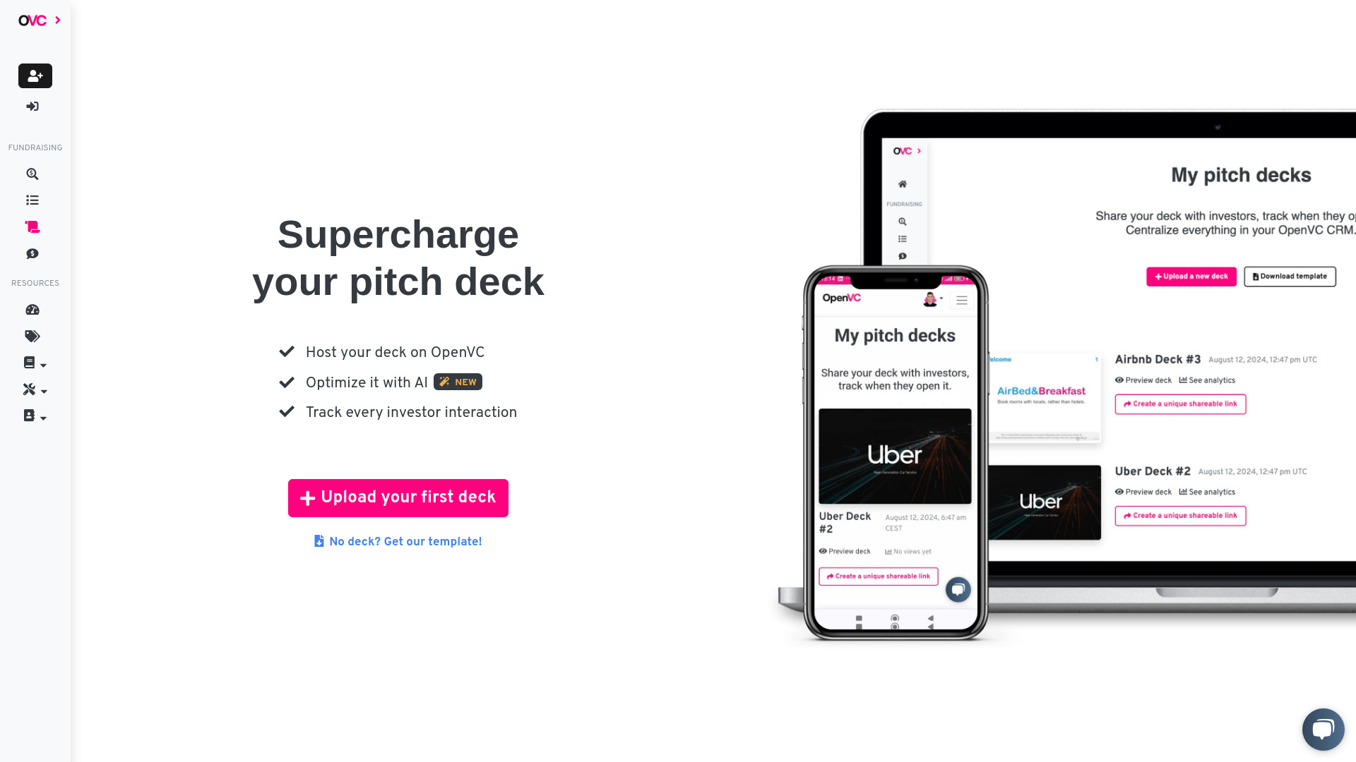 OpenVC helps build top pitch decks with AI and connects founders with investors.