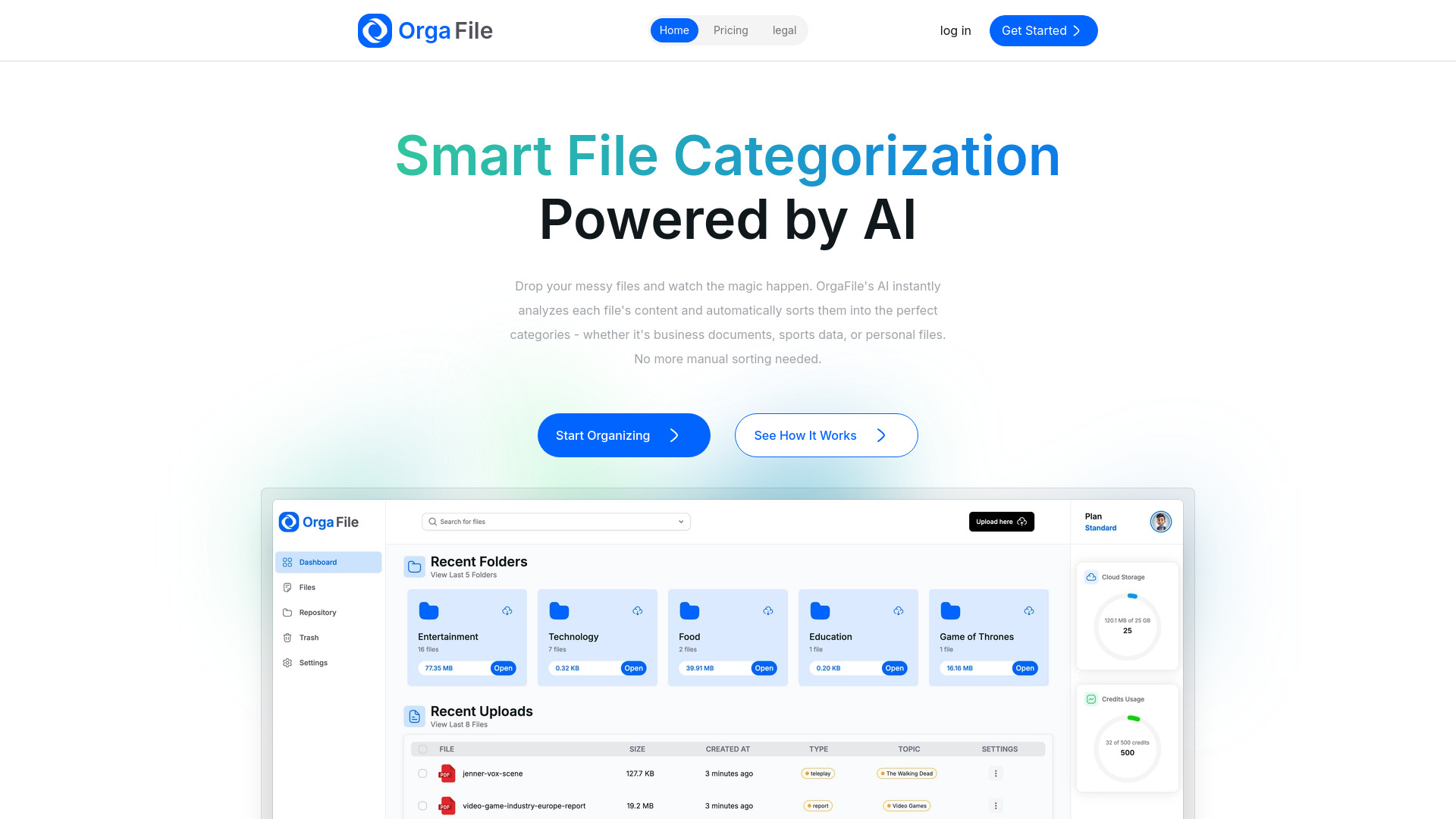 AI-powered file organizer for smart categorization and renaming of documents.