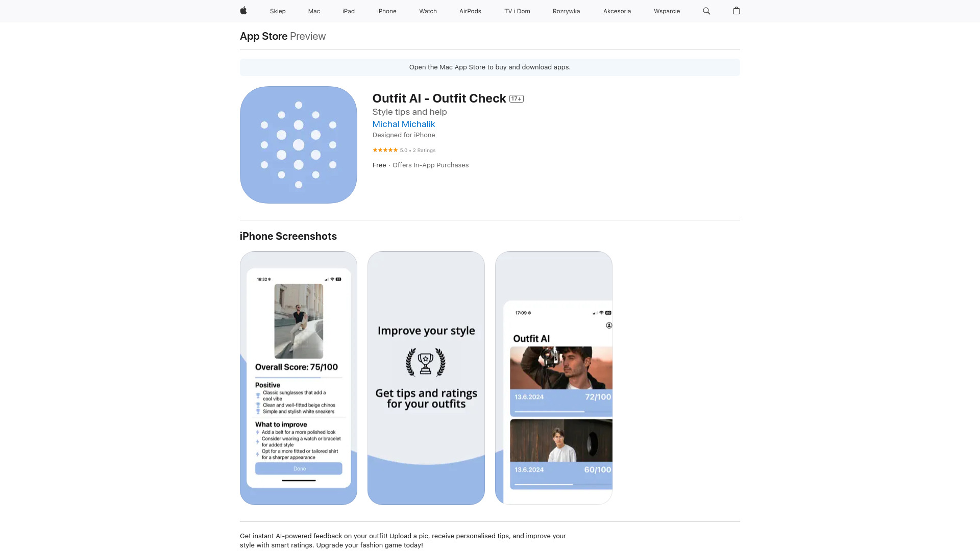 AI-powered app for instant outfit feedback and style improvement.