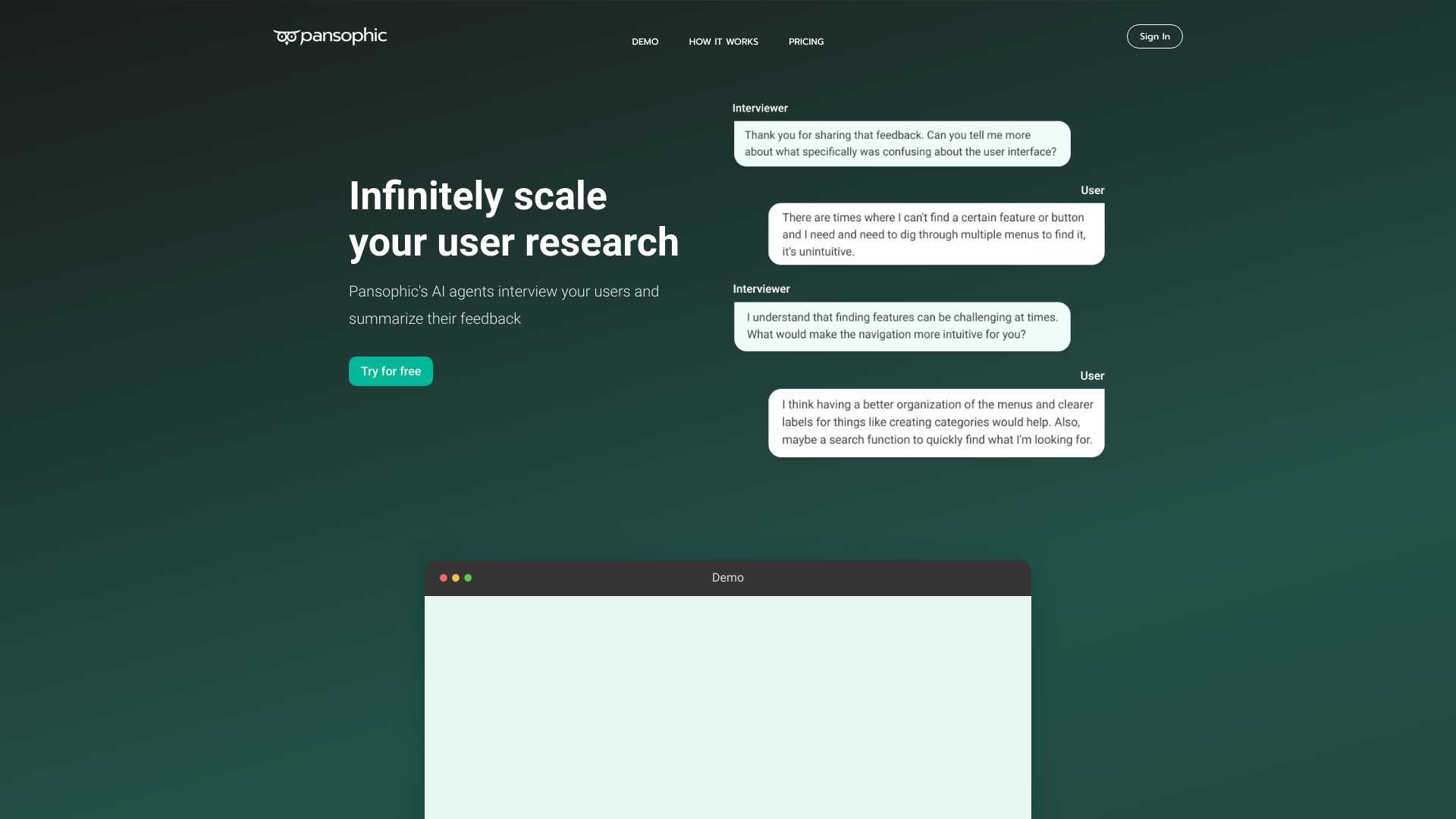 AI-powered user interview platform for scalable research and feedback analysis.