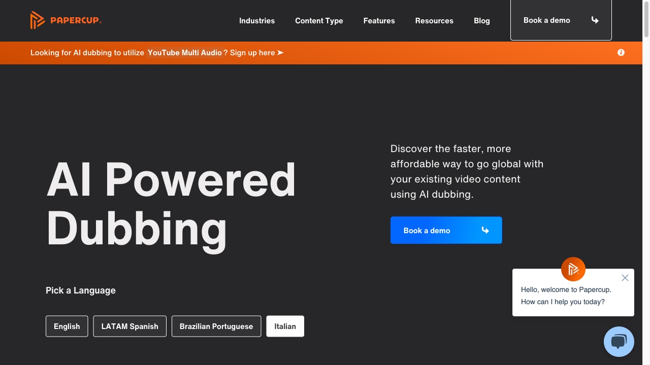 AI dubbing service for translating videos into multiple languages.
