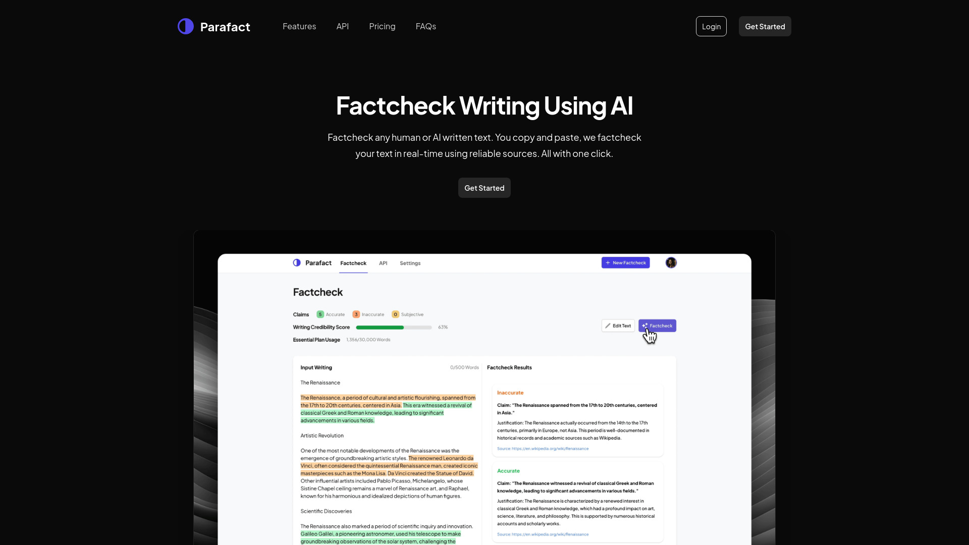 AI-powered fact-checking tool for verifying text accuracy in real-time using reliable sources.