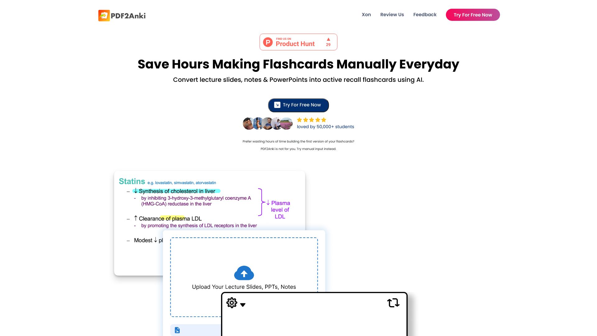 AI study assistant that converts study materials into flashcards, quizzes, and study guides.