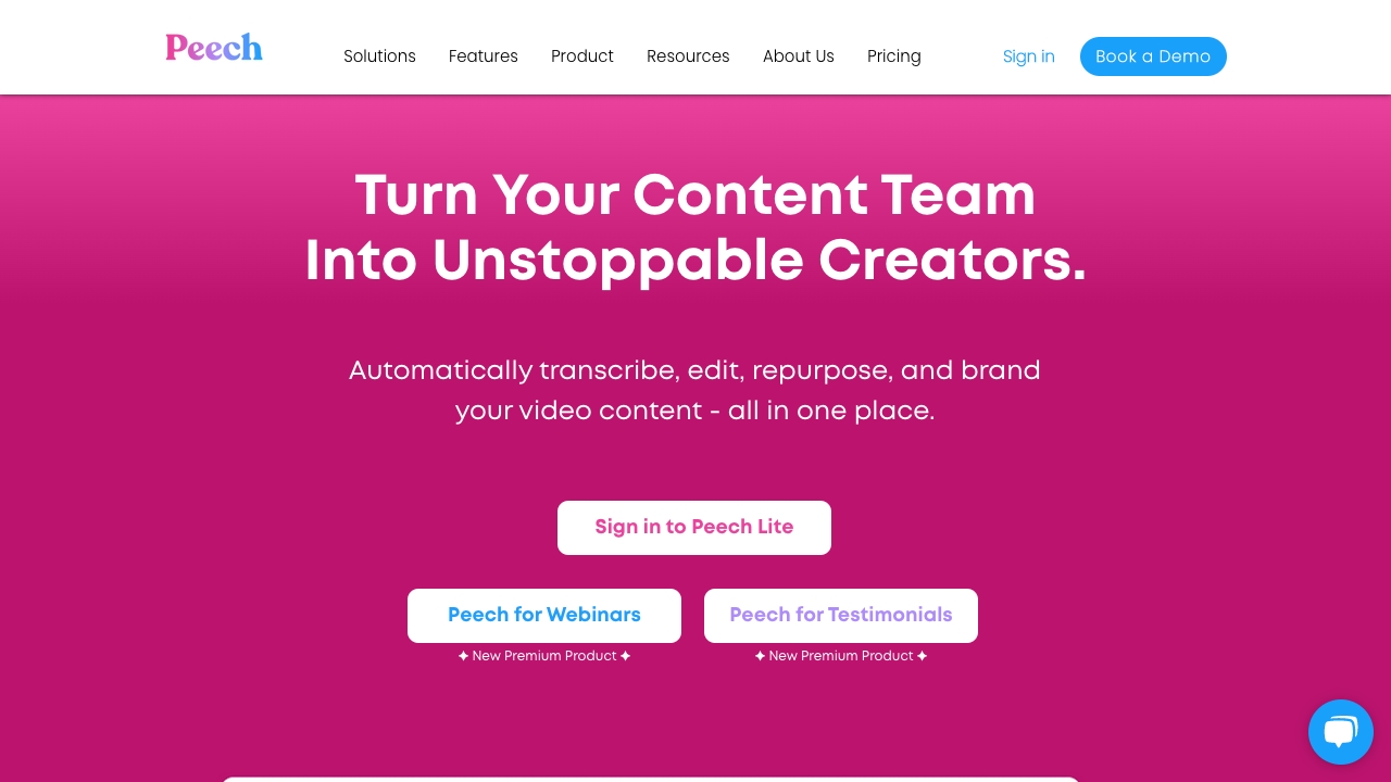 Peech transforms video content into high-performing business assets with editing and repurposing tools.