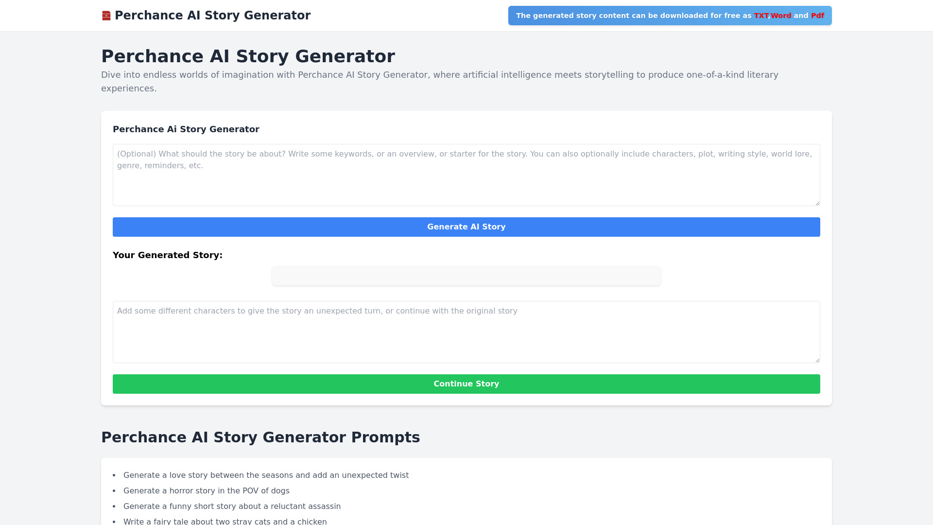 AI-powered platform for generating and continuing stories in multiple languages.