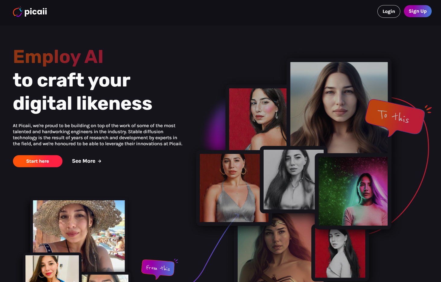 AI photo editor that generates AI images from uploaded photos using custom models.