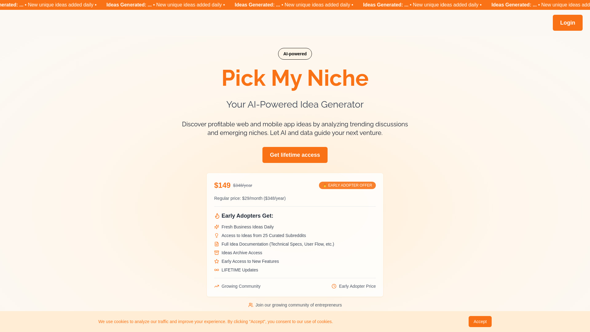 AI-powered platform for discovering profitable app and web ideas through trend analysis.