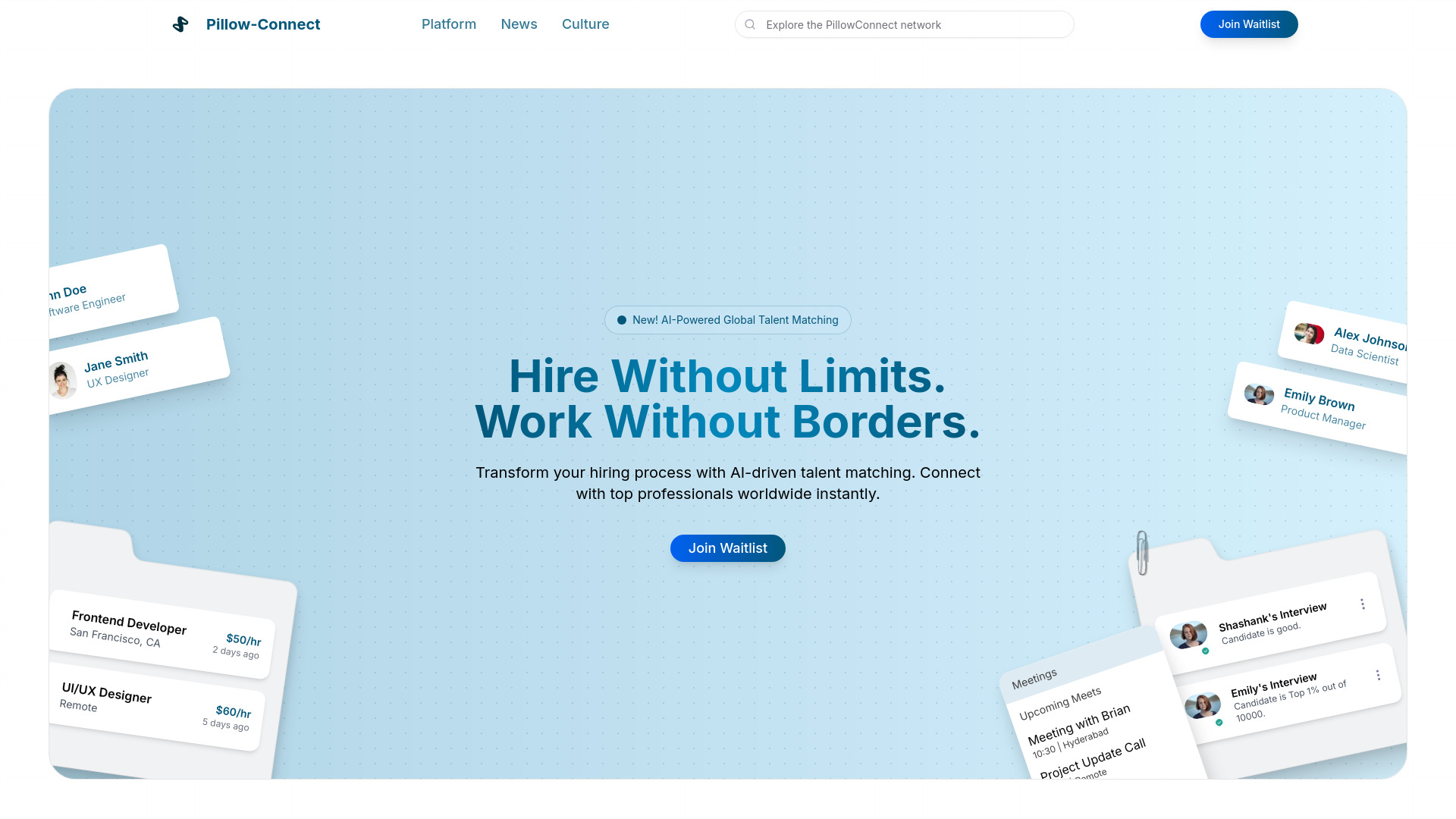 AI-powered platform connecting global talent with leading companies.