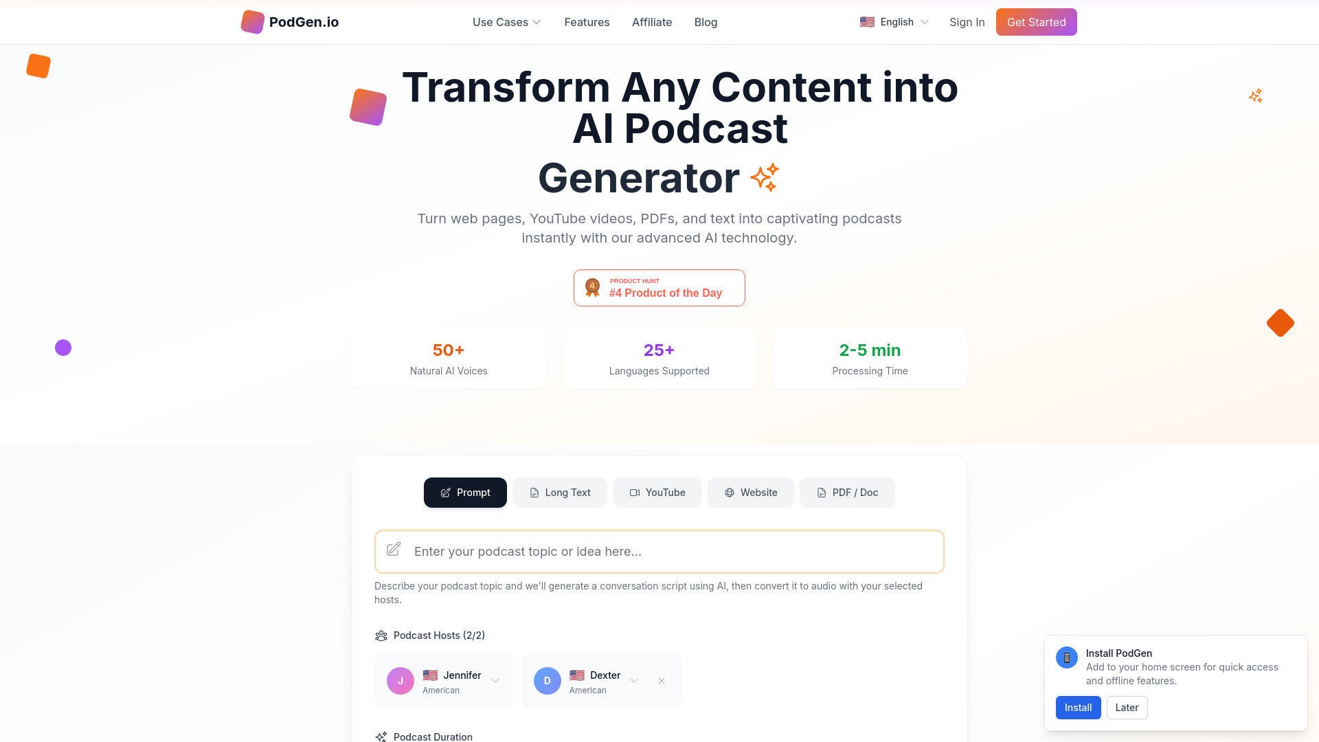 AI tool to convert content into professional podcasts with natural voices.