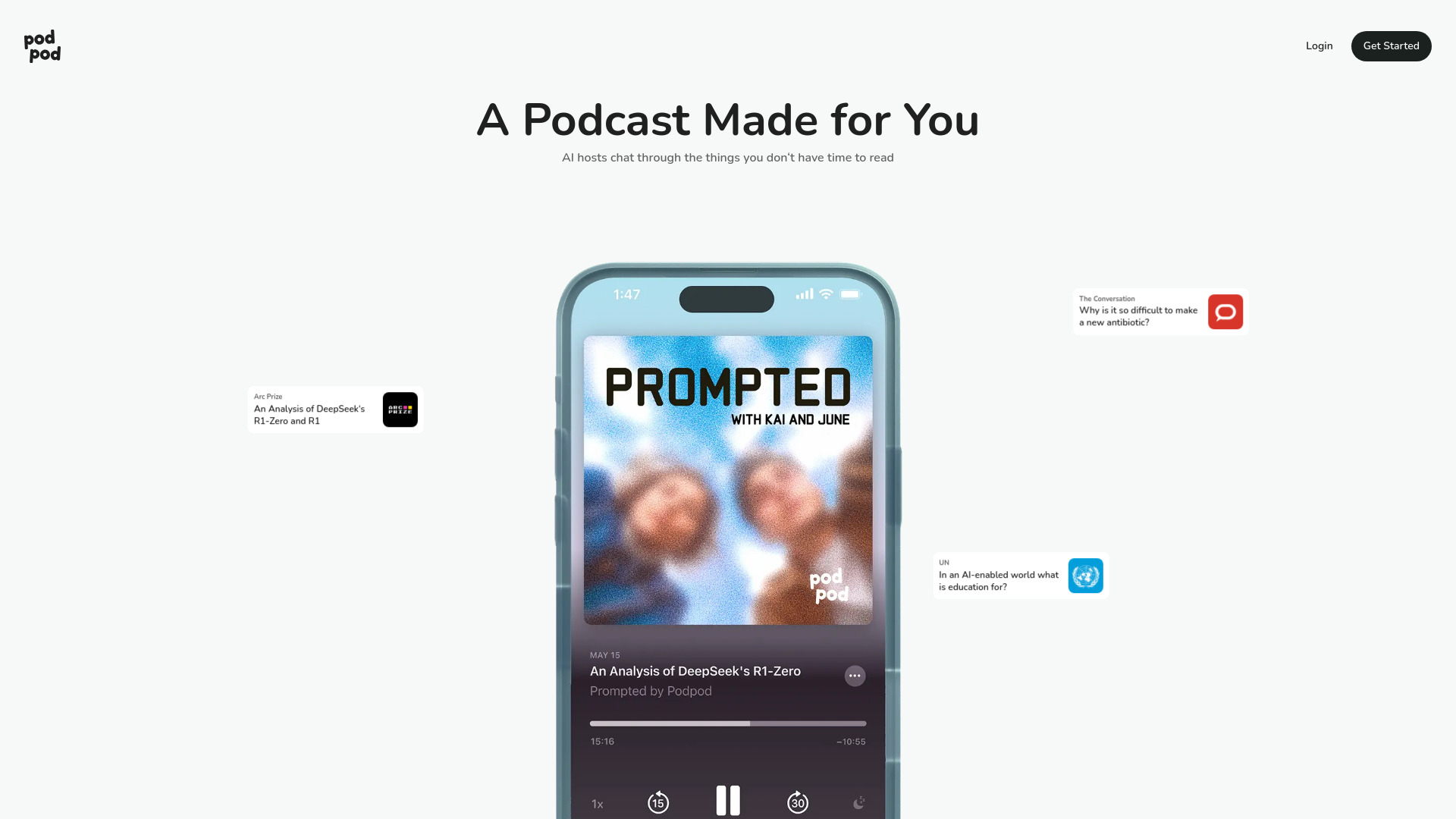 Podpod converts articles and newsletters into podcasts using AI hosts.