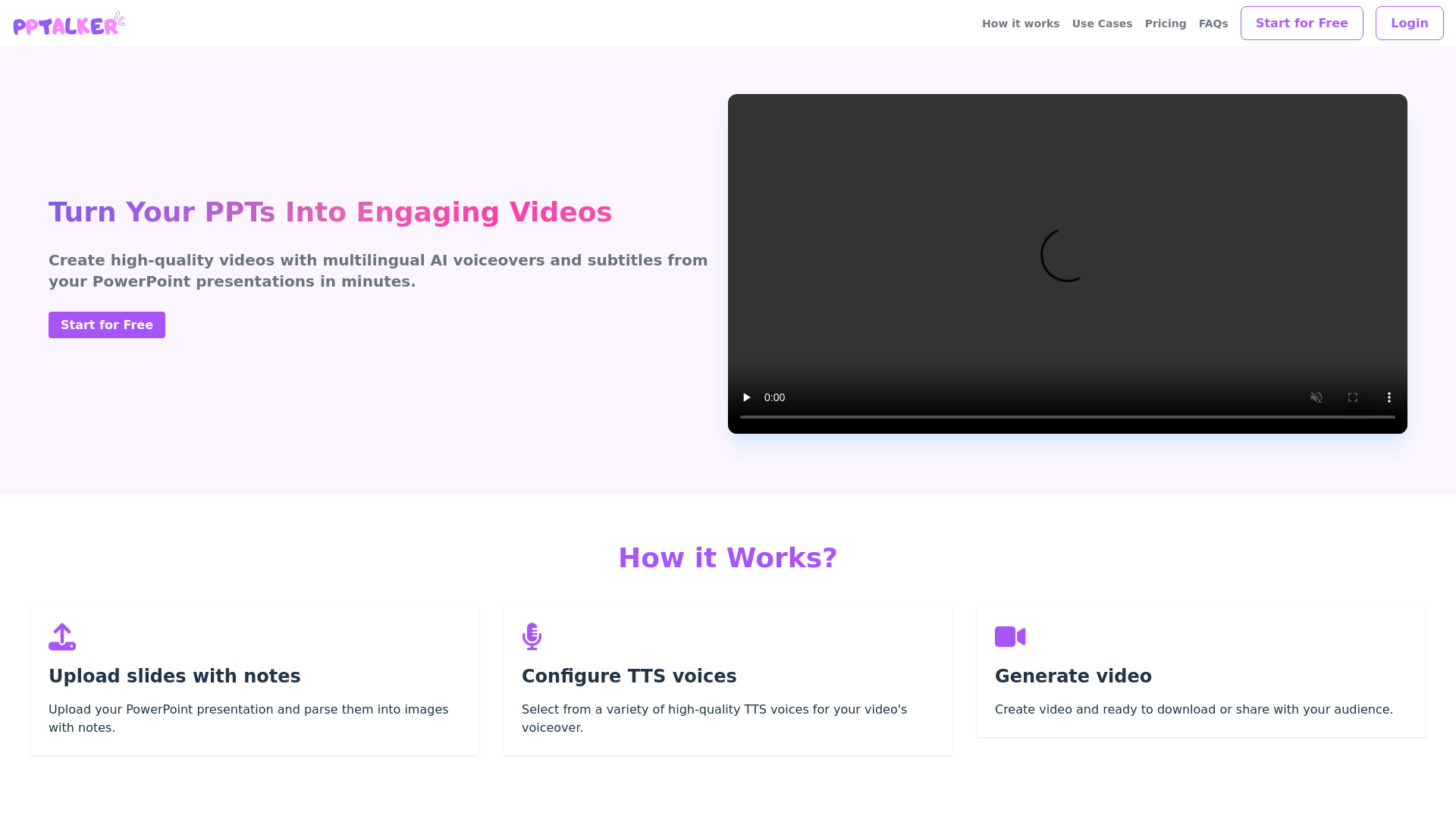 AI-powered PowerPoint to video converter with voiceovers and subtitles.