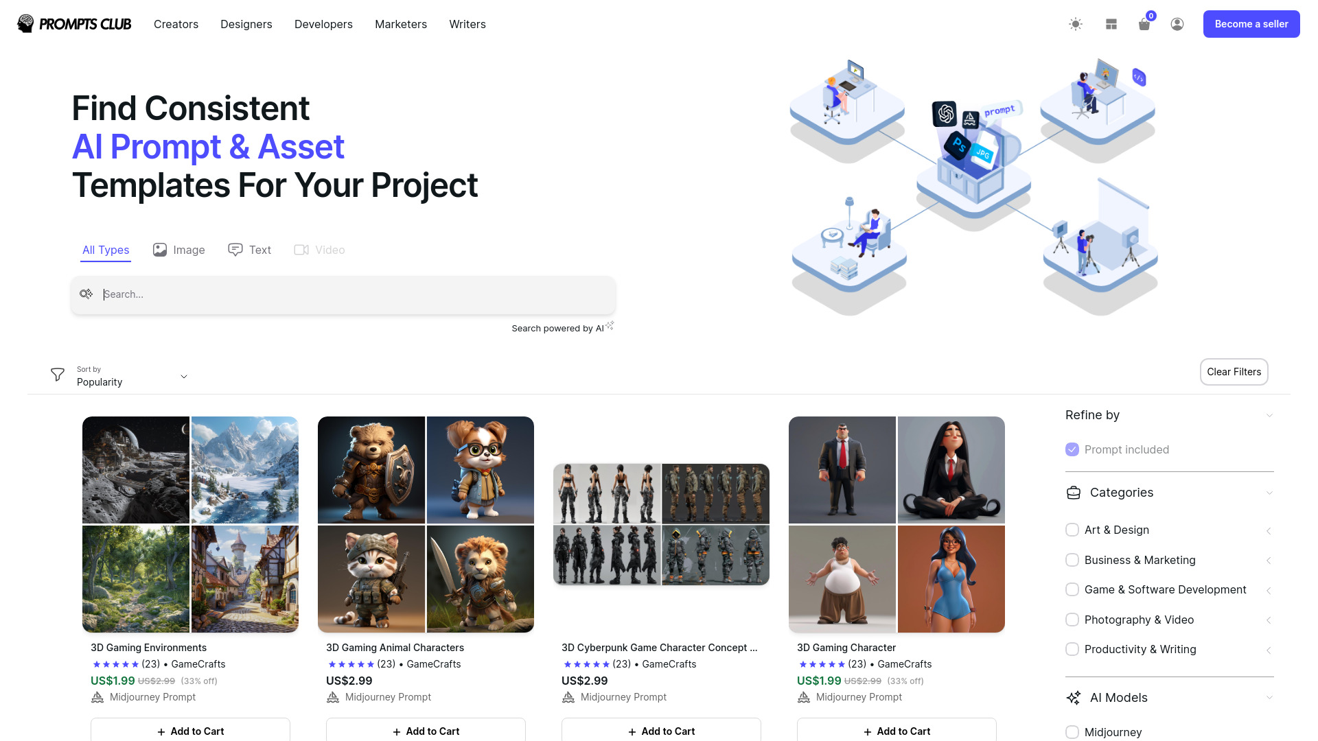 AI Prompt and Asset Marketplace for generative AI models and prompts.