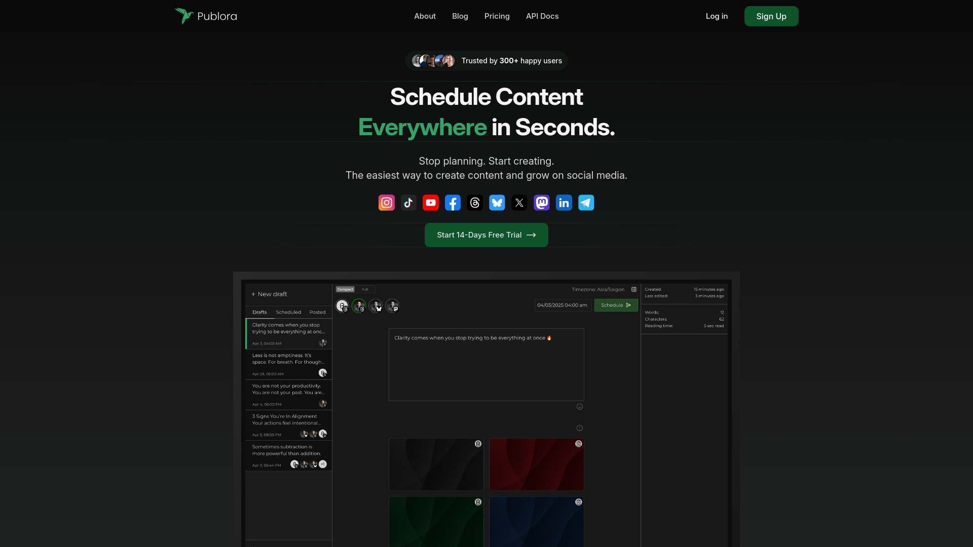 Social media management platform with scheduling, analytics, and AI content suggestions.