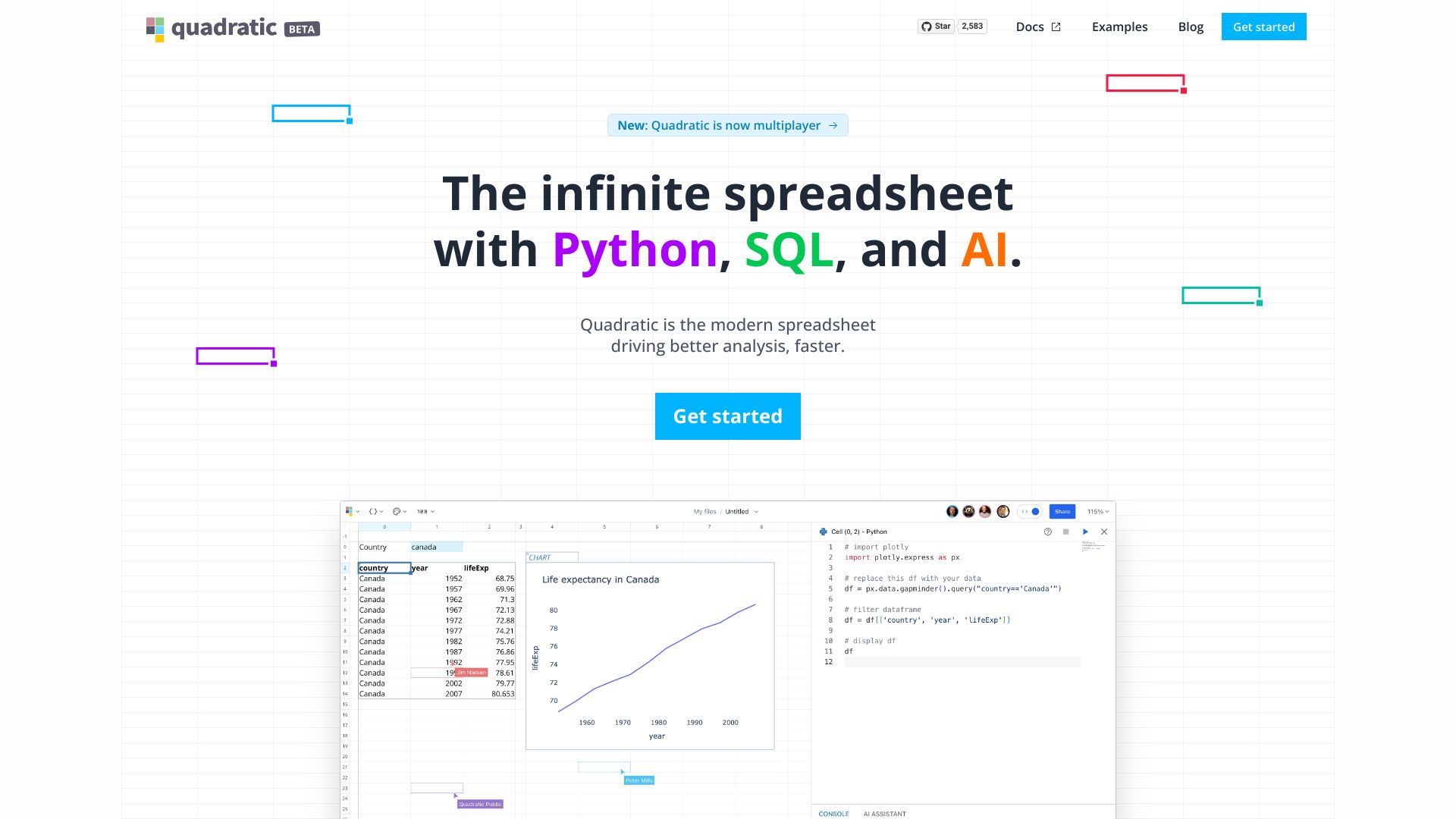 AI spreadsheet with code, connections, and real-time collaboration for data analysis.