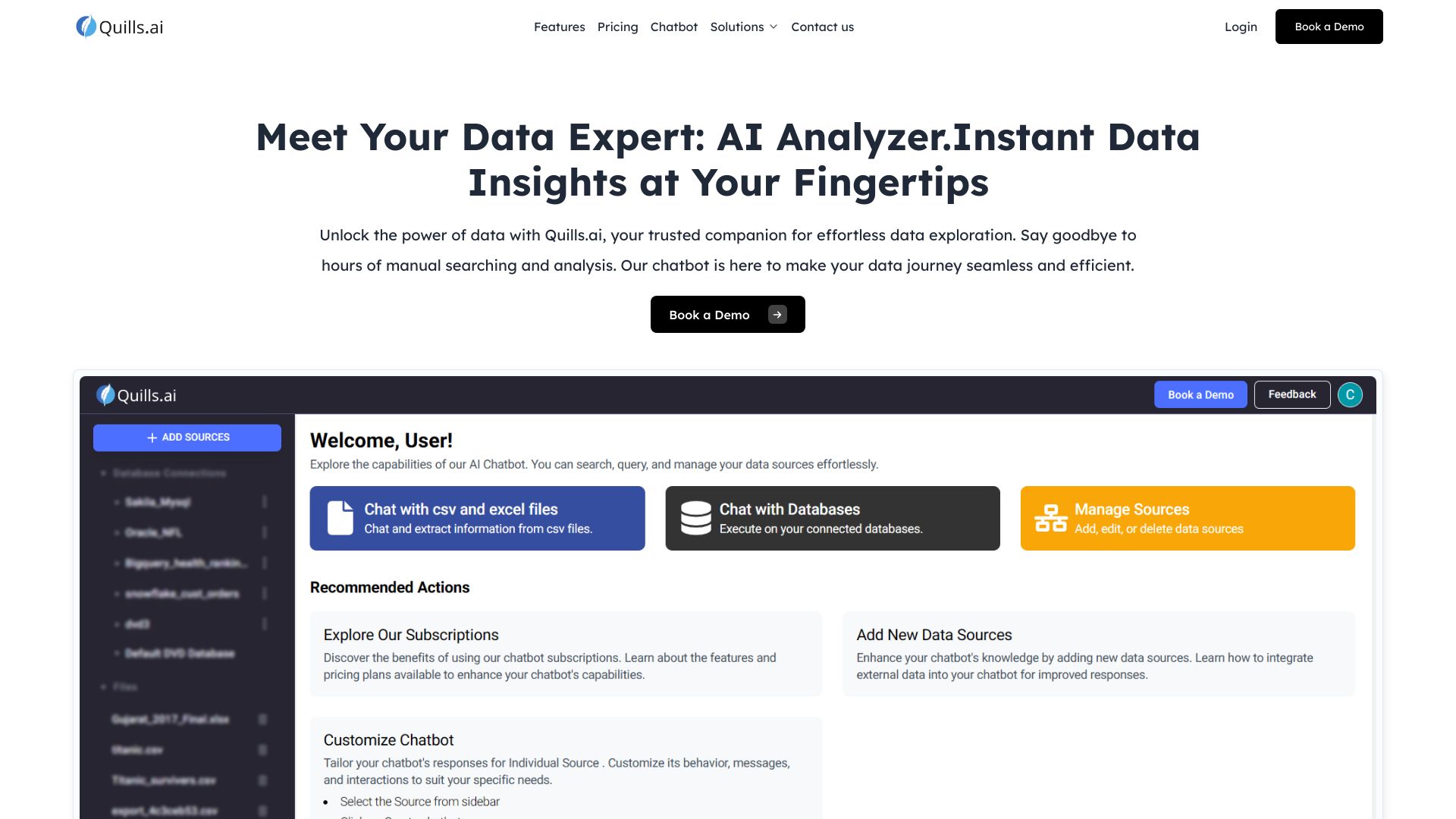 AI data assistant for data analysis, visualization, and SQL query generation via chat.