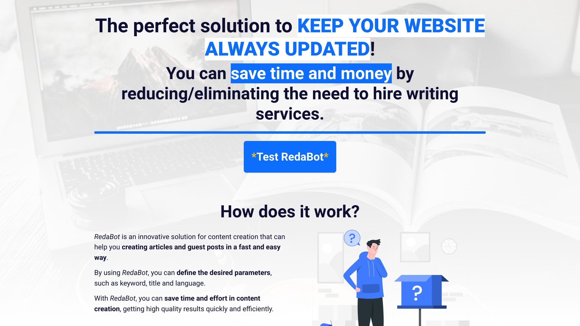 RedaBot is a virtual writer that helps create website content quickly and easily.