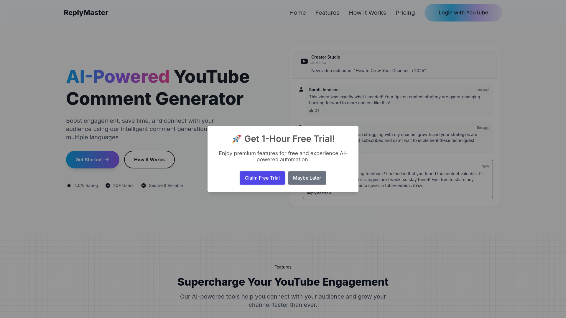 AI-powered YouTube comment reply generator to boost engagement and save time.