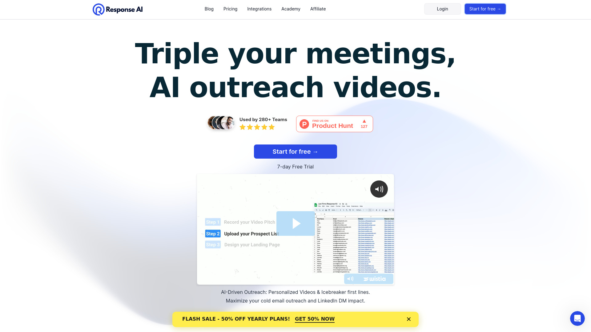 AI tool for personalized video outreach, boosting meetings via cold email and LinkedIn.