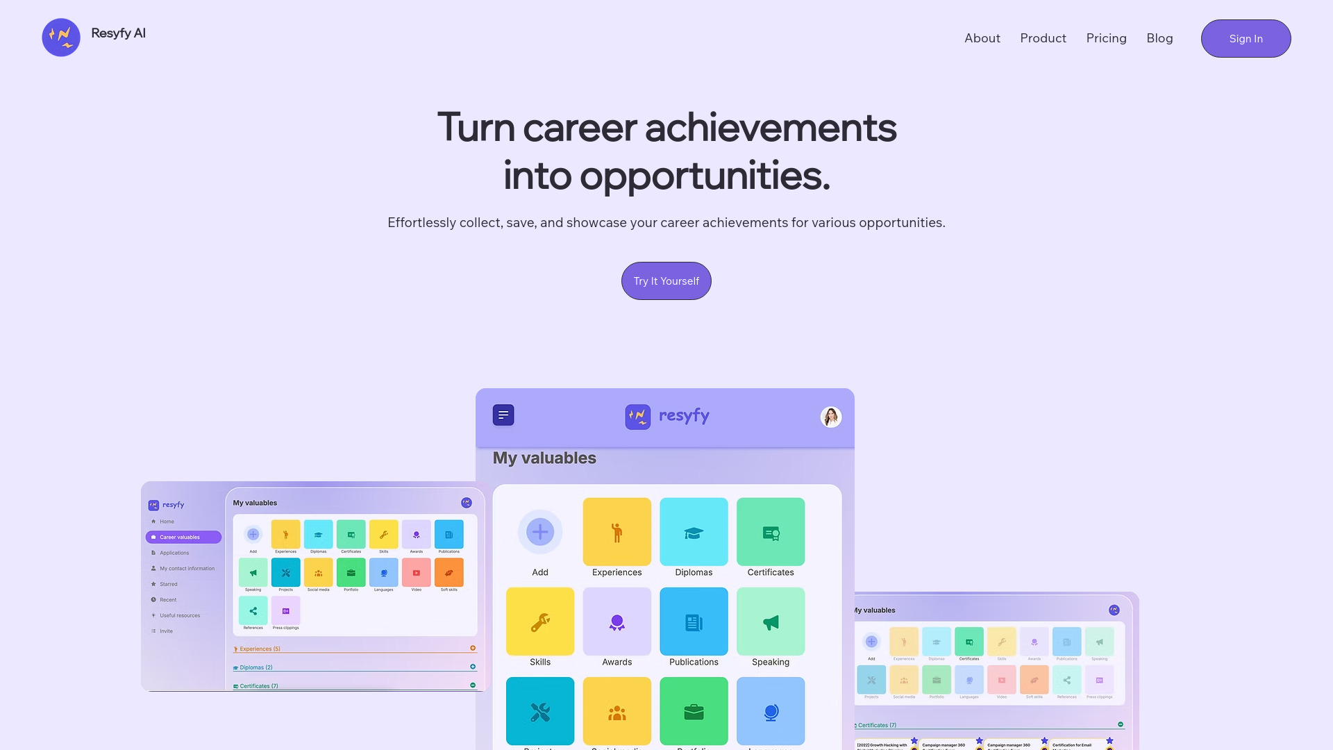 AI-driven platform to organize career achievements into a dynamic portfolio for new opportunities.