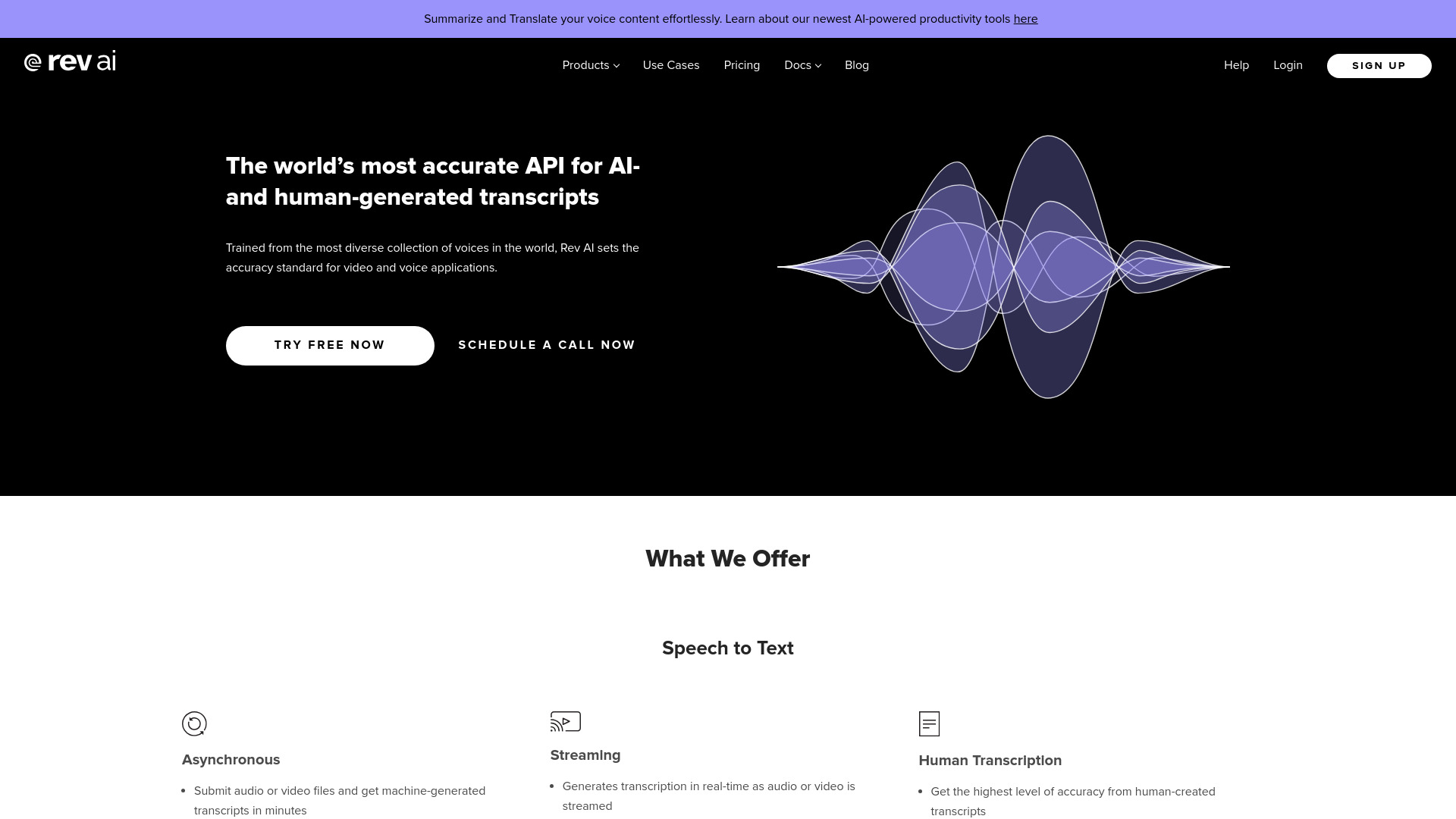 Accurate speech-to-text API and speech recognition service with various features and language support.